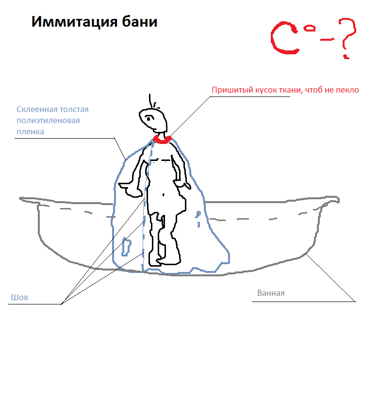 Итак, я хочу сделать эффект бани в себя в ванной, для этого у меня есть полиэтилен, которым могу обмотаться и ПАРИТЬСЯ.