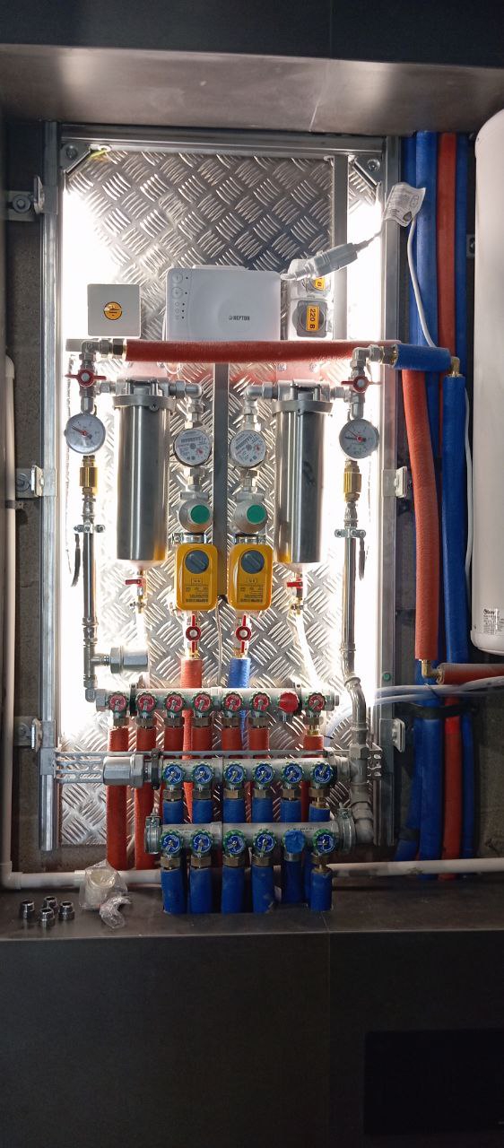 Я дурак и сделал узел водораздела слишком низко. Если бы фильтры и всё прочее говно стояли бы выше, я бы мог сделать там обычный распашной шкаф и иметь доступ ко всему.