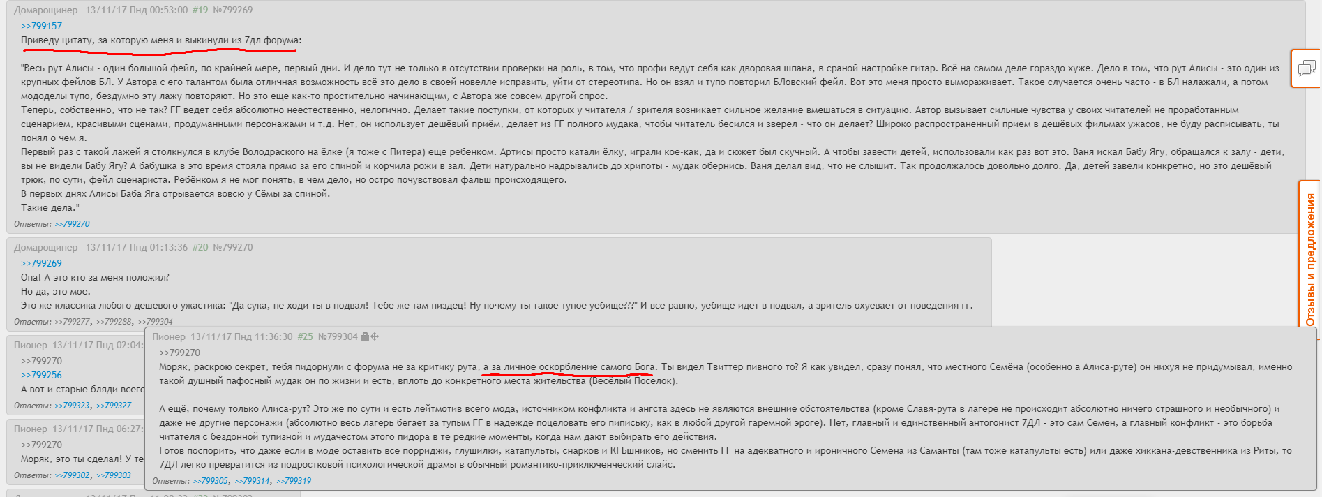>>1121975 >как после каждого его поста его в тупую оскорбляли и называли чуть-ли не дьяволом во плоти Чаще всего его называли вниманиеблядью что отчасти было правдой. >>1121976 >А теперь скажи, он ли в этом виноват? Конкретно в этом - не виноват Для меня больше показательно то, что моряк даже уйдя с двача/пивофорума, и.т.д. до сих пор продолжает вляпываться в какие-то срачи и конфликты. То в рувн-параше, то в ещё где. Это как пивописовское "все предадут". Они друг друга стоят на самом деле. Моряк - менее токсичный, но строит общение всегда с провокативной чсвшной позиции. По крайней мере тогда он делал так.