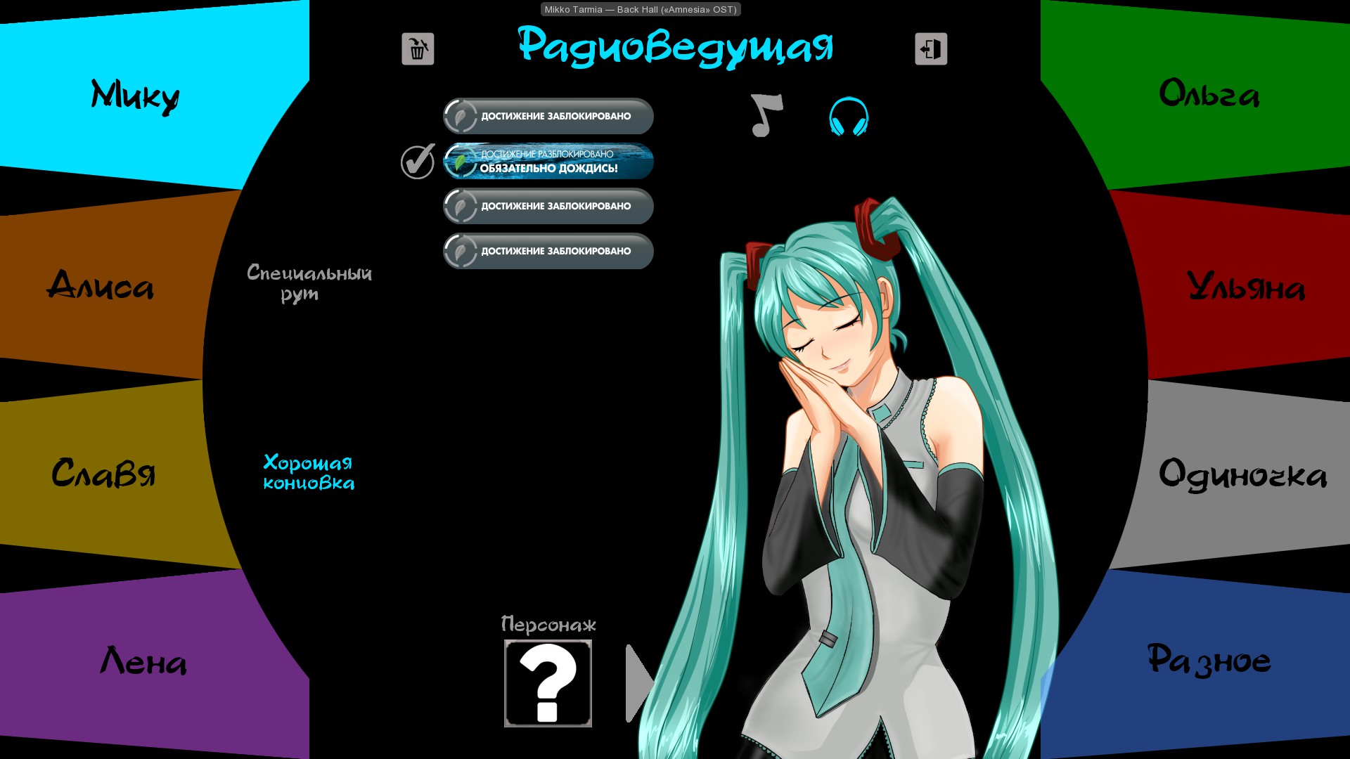 >>1121909 Ок. Алиса - истинная концовка Алисы-диджей Лена и Ольга - нейтрал и истинная концовка Ольги + реджект и инт-концовки Лены-фз Ульяна - Истинная концовка Ульяны-7дл Со Славей и Мику сложнее, сами по себе они девочки без особых секретов, поэтому в их рутах похожего контента нет. Но есть ветки дополнительно раскрывающие лор Порриджа: Славя - вся инт-ветка Слави классик Мику - концовка "Искорка"