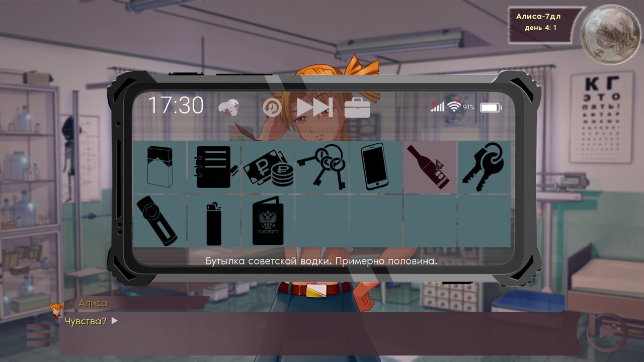 Пик1 - Возможен пиздинг Катенькиного сюжета в будущем. Пик 2 и 3 - Пивопис окончательно пизданулся , сделав все выборы в таком оформлении(нет, текст не переписан так чтобы данная визуализация имела смысл, работа над гейм-дизайном даже не нулевая - она отрицательная). Третий пик это например "к кому сесть в столовке". А второй это из ивента завтрака с Алисой в 3 дне, где мы можем согласиться помочь ей или не согласиться. А вы бы догадались без этих пояснений? Ну и наконец инвентарь. В инвентаре можно курить в любой момент и если ты сделаешь это перед персонажами, то тебя катапультирует(есть исключения типа Алисы и Лены). Это выглядит максимально ебануто, особенно в драматичных сценах. Опять же, геймдизайн с парнаса.