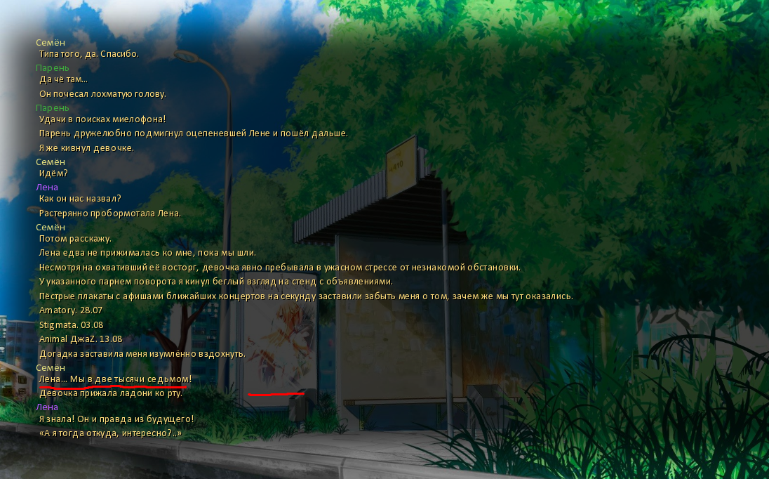 >>1121640 Новое амбальское послесловие для концовки "Больше, чем жизнь" в руте Алисы-7дл. Если у тебя собрано сердечко и прочитана это концовка, то послесловие можно читать прям из ачивлиста