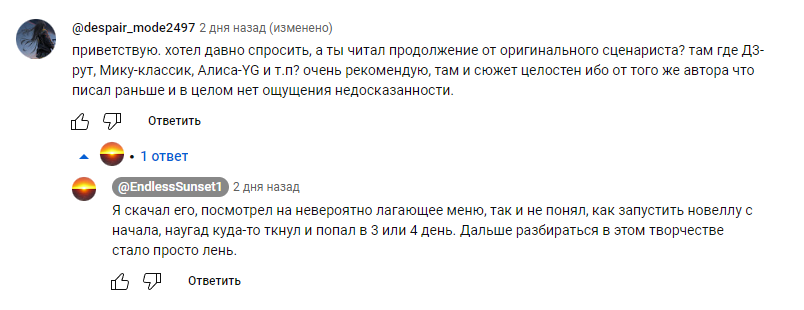 Димокуколд под старым видосом Реголаса рвётся от того, что амбальские донаты идут на новые цг. Ебануться, правда, в визуальной новелле улучшают визуал!!! Он бы охуел если бы поиграл в типичное японское эроге