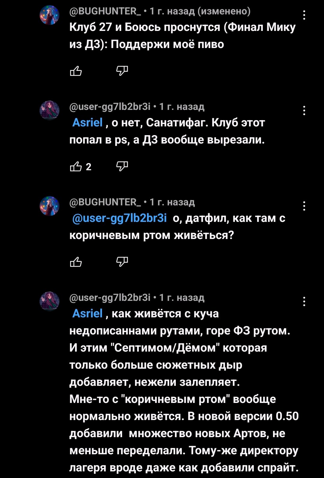 >>1225179 Про коричневый рот первым заикнулся не чел с Ольгой на аве, а долбоёб с тыртейлом. Ютуб просто умело прячет комменты с оскорблениями и подобным, но их можно увидеть, если профильтровать комменты по свежим