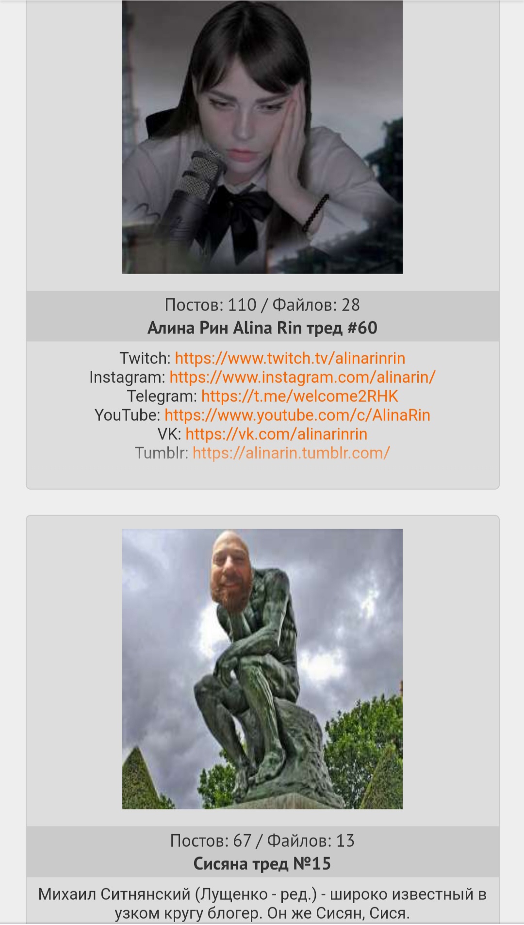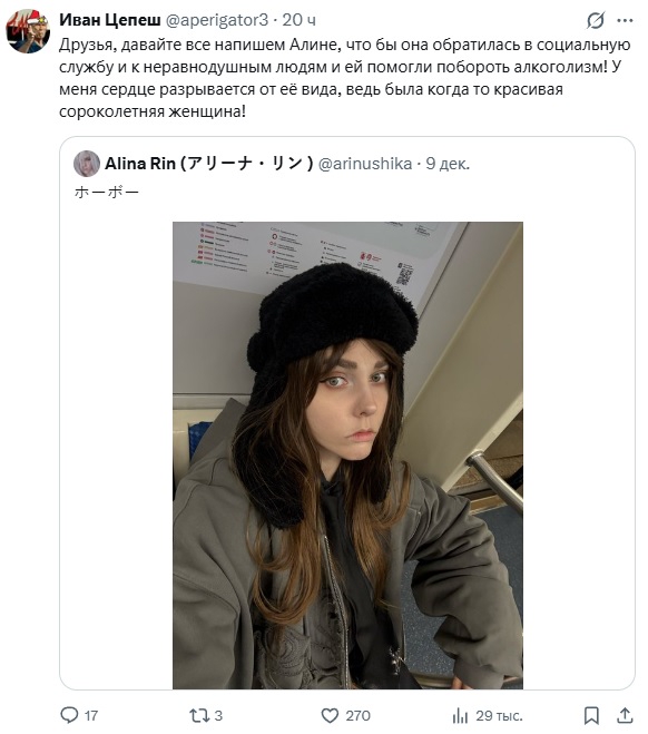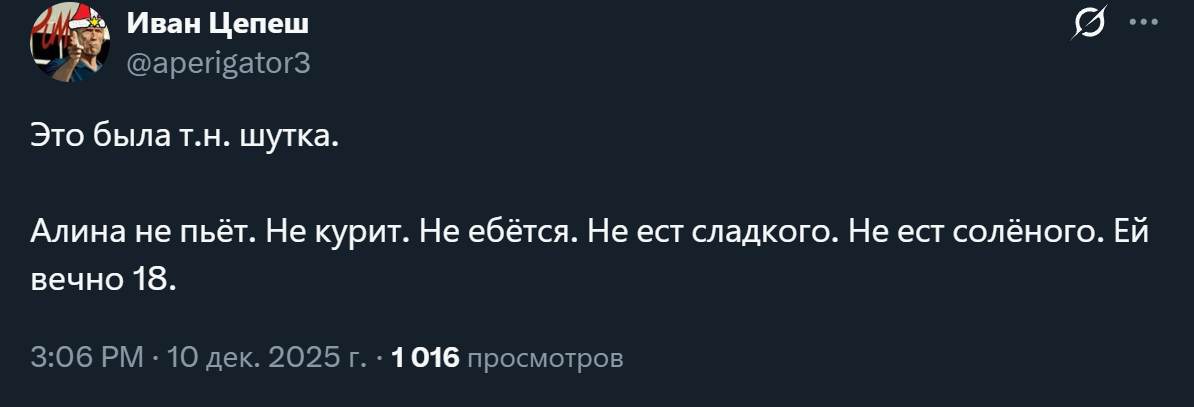 Кисики, в очередной раз приперлись в тред, чтоб рассказать нам сказки про добрую, красивую Алину как будто-то у людей своих глаз нет Ну чё когда там донат гол на смену гражданства? Живите сами в этом мордоре.