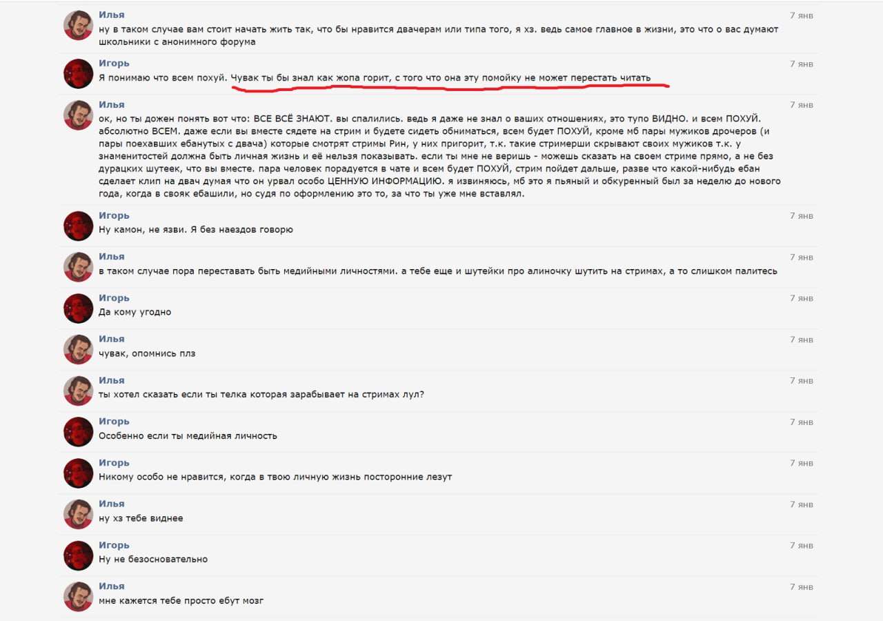 Да, кстати, в сливе есть переписки вардена, кроссвайза, пвая и задуная на тот момент времени. 4 модера. Они там с Алиной и всякими левыми людьми переписываются. Ничего интересного абсолютно.