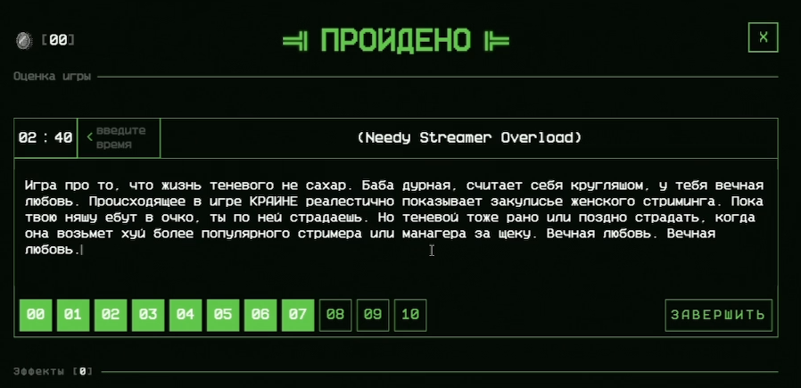а я не пон фигли она на следующий стрим прохождение не перенесла? схема: подруб =>>> блин ребзя пук среньк, на 1ое января, в 9 часов утра, всё пройдём =>>> следующий аук и так весь говноивент, донаты мутятся, просмотры крутятся, ебло торгуется, смысл что-то менять?