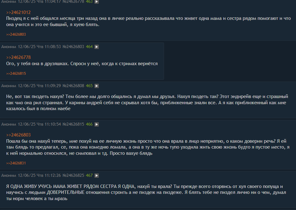 Вот блять, серьезно, зрилы Алины Рин тут есть еще? Вы же знаете, что она любит толкать хуйню про "секс переоценен", "секс хуйня и не нужен", в таком ключе. Кто-нибудь верит, что она этого своего кукареканья на стримах придерживается, и дейсвтительно находится в добровольном целибате, потому что ей рил трахаться не нравится? Ну это же пиздеж расчитаный на симпов, мерзкий и гнилой. Тварь ебаная.