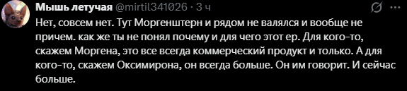>>25823011 Он бабки зарабатывает ты о чем ваще. Тут тем более ситуация когда все и так угарают над оксаной. Из-за этого не так смешно. Тут единственная верная позиция будет начать защищать альбом чтобы подорвать пердаки, но это не вписывается в образ славы