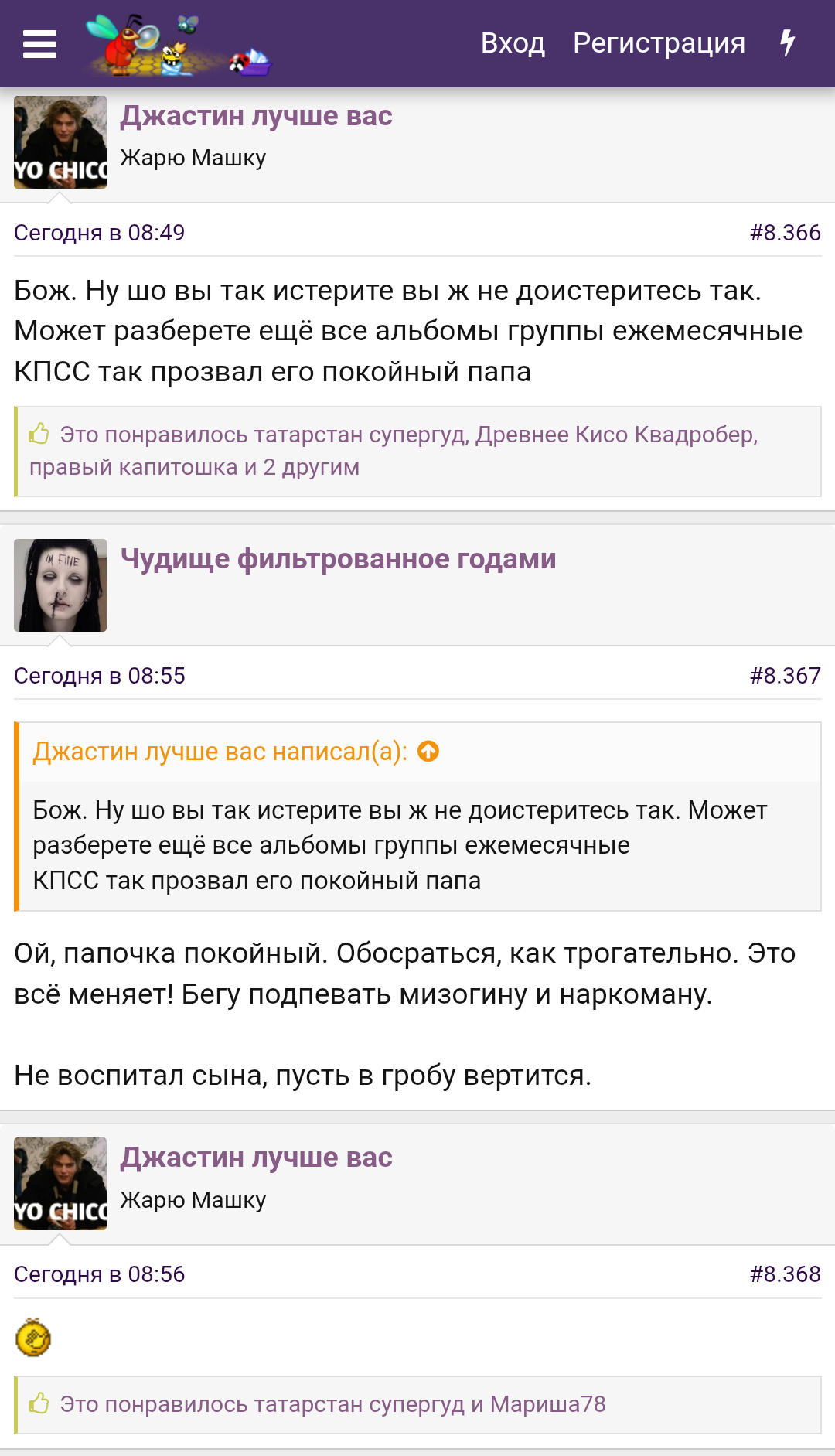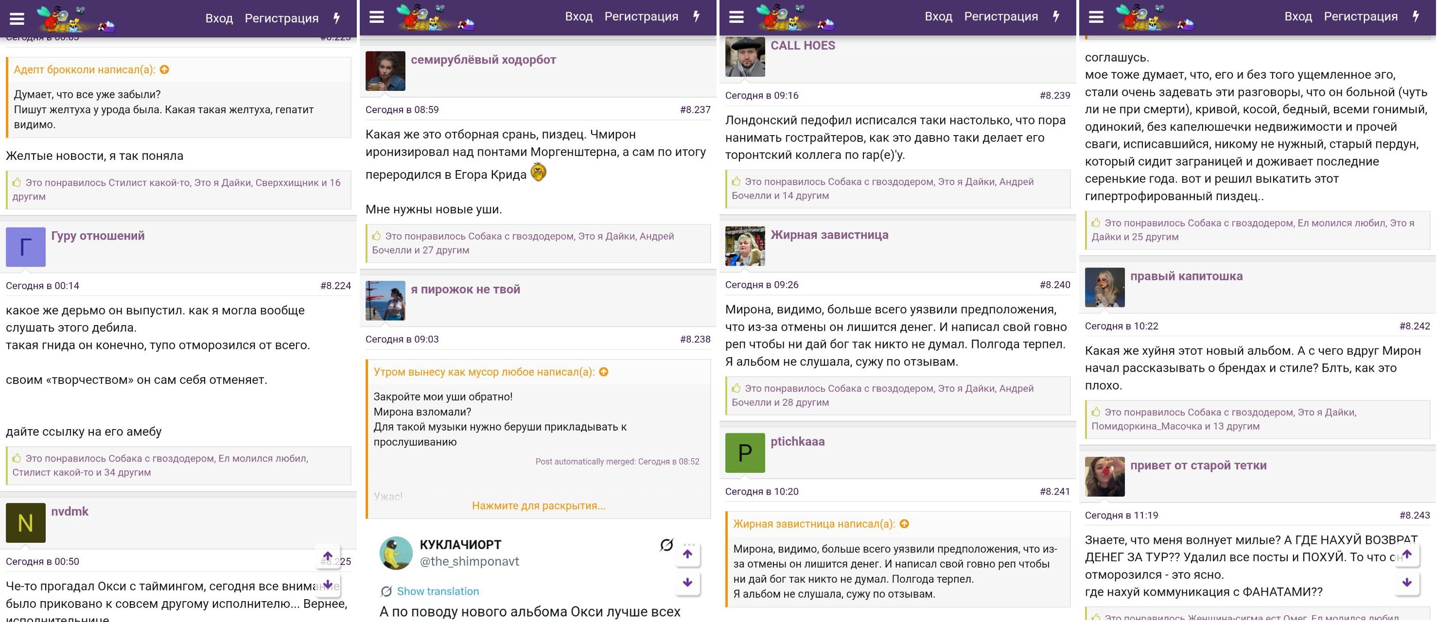 Миха запостил сестру окси и сразу набежали окси сисуни. Они весь рунет под собой держат и сразу набегают на любое упоминание кумира. Все хотят еврейскую огромную шляпу (по словам алехина) пососать