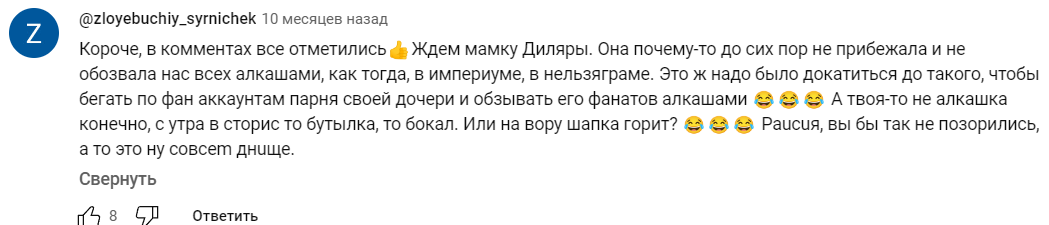Я думал, а че за дауны вообще форсят тему с водолазом, это ж троллинг уровня школоты, кому это вообще доставляет, сколько извилин должно быть? Ну да, его бомбит, но нельзя ничего интереснее сортирного юмора было придумать? Но вчера увидел нарезку опустившегося на самое дно, проебавшего всё, разжиревшего, спившегося и сторчавшегося шиза мц случника и всё встало на свои места Это хова еще его ночных кружков не видел с кулсторями про мухоморы и обосранный матрас, с параноидальными обращениями к сотрудникам неких структур, руководителю некой страны, бамбергу и тд