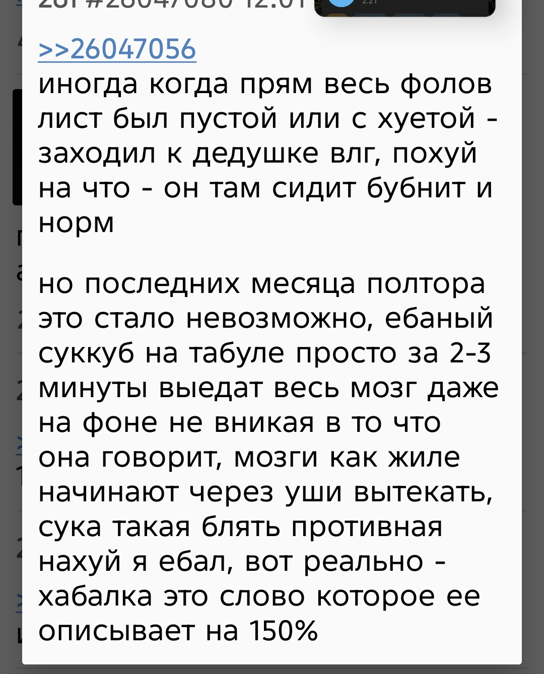 >>26048509 Потому что этот онлайн на повторах, он, блядь, чуть ли не выше, чем был до этого реальный онлайн у Дениса. То есть, ну, это просто бред, блядь. Зачем еще это может делаться? Я хз. Может, он просто не может столько стримить, как остальные миньоны. И ему надо часы просмотров так добивать. Я хуй знаю, блядь. Просто, ну, это абсурд. Это палево и бред. Но это еще не все. То есть, как бы, что я вижу вообще, заходя к нему на канал. если раньше у него были какие-то стримы, какой-то контент, то сейчас он просто, ну, я уже не знаю, уже третий месяц просто сидит с этой табулой вдвоем. Ему уже канал надо не Вилов Геймс называть, а переименовываться в Вилов Булу какую-нибудь. Потому что, ну, блядь, там больше вообще ничего не происходит. Причем я совершенно не понимаю, кому может быть интересно на это смотреть Денис импозантный мужчина, он всегда нравился женщинам И у него, кстати, я думаю, что большая довольно аудитория женская Им, бля, интересно смотреть на это Мне кажется, если поставить себя в позицию фанаток Дениса То он мне, блядь, был противный, как будто бы Типа, я не говорю, что надо скрывать свои отношения или еще что-то. Ну, ты как бы обознач бы, типа, я не говорю, что надо скрывать свои отношения или еще что-то, но ты как бы обозначил, вот у меня есть девушка красивая, все, замечательно, она прекрасная стримерша, ну и стримьте, блядь, я тоже какое-то время там жил со стримершами, Но у меня даже мыслей не было лезть к ним на канал или просто с собой сажать. Ну, там отдельные случаи были, но это какой-то бред. Постоянно. Ну, у меня даже мыслей не было лезть к ним на канал или просто с собой сажать. Ну, там отдельные случаи были, но это какой-то бред постоянно-то. То есть, ну, как бы, а смысл? Это реальный онлайн, мне кажется, просто уничтожает. Там даже с ботами уже осталось вообще всего ничего. То есть, на повторах было больше после Нового года, чем сейчас. Я уж молчу там о цифрах, которые Денис в прайме способен выбивать. Причем честных. Там от пяти до десяти тысяч. Просто сидит, блин, со своей девушкой. Тоже стримершей. Уже начинает создаваться впечатление, что это ее канал. Мне уже кажется, что она, знаете, как это... Как шпионка там, типа, от агентства GCA заслана, типа, к Вилавгеймсу, чтобы подмять его. Потому что, ну, это просто какая-то херня. Ну, типа, серьезно. Типа, я против любви отношений ничего не имею. Я уверен, что она прекрасная женщина, которая готовит замечательное мясо на Новый год, так сказать. Но, блядь, типа... имею. Я уверен, что она прекрасная женщина, которая готовит замечательное мясо на Новый год, так сказать. Но, блядь, типа, просто представьте, что я сейчас замутился в какой-нибудь стриме. Трудно это представить, конечно. Я сам, ну, типа, в шоке был бы от такого развития событий. Ну, возьмем какую-нибудь совсем уж страхоебину.ину кориум си например вот я замутил с корием си я просто блять говорю все пацаны нахуй сегодня у меня кори в гостях и мы просто сидим блять сидим целыми днями с корием си блять я вам показываю как аккорием все замечательно она со мной играет целыми днями в игры ну мы показываем наш бы так сказать потом снова играем в игры потом я говорю какая замечательная давайте к ней на канал зайдем и так и за дня в день да вы бы наверное вы бы просто ну во-первых половину бы ушло потому что на это говно невозможно смотреть половину просто не хуесосил постоянно что я 