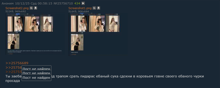 >>26106630 >>26106638 >>26106645 Репортите это говно. Оно не стесняется и раз в час поворяет тупо посты, юзая даж не только одни и те же фотки, но и тот ж самый порядок, и отлетает в бан.
