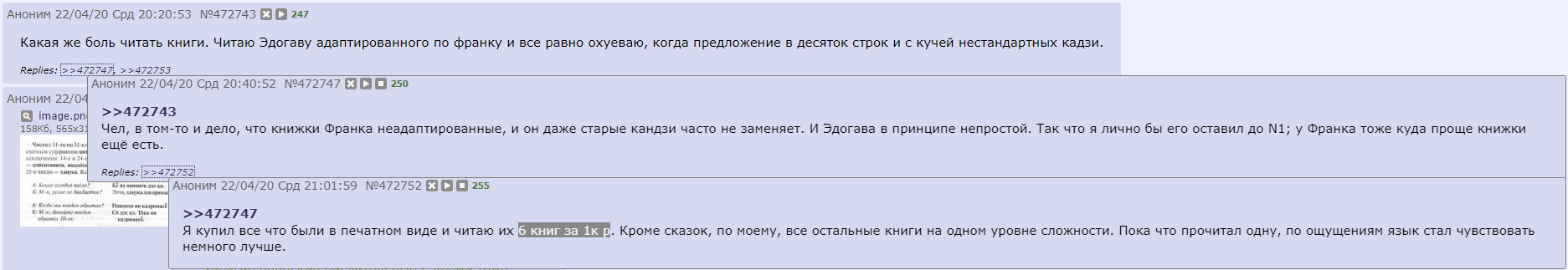 А толку если применить их нельзя кроме как в устной речи. Только если учить письменность на стороне, но в таком случае зачем этот учебник для инвалидов? Про аниме без субтитров говорить не надо – того уровня что дает этот учебник недостаточно (я открывал, там темы N5 и N4). И кстати продолжать изучение всё равно придется с нормальными учебниками, привыкая один хуй к иероглифам. Ну или оставаться вечным ньюфагом.