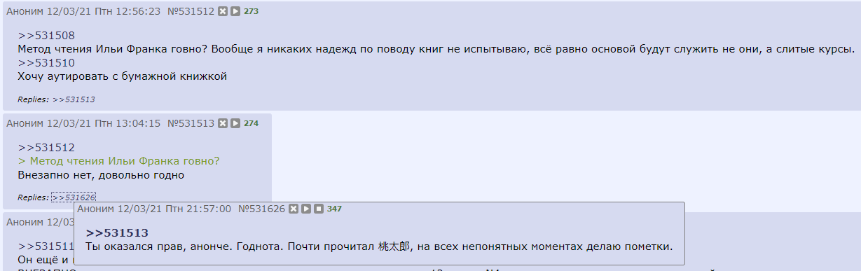 Никто не обоссывал таекима, архивачь-сама просто потешается над давешним аноном. По сути, не суть важно по_чему ты будешь учить, если не слушать двух довенов в итт треде. Один будет утверждать, что учить можно только по англюсику, второй что надо выдрочить наиболее полный справочник грамматики и слов как можно быстрее, а то состаришься и поезд уедет.