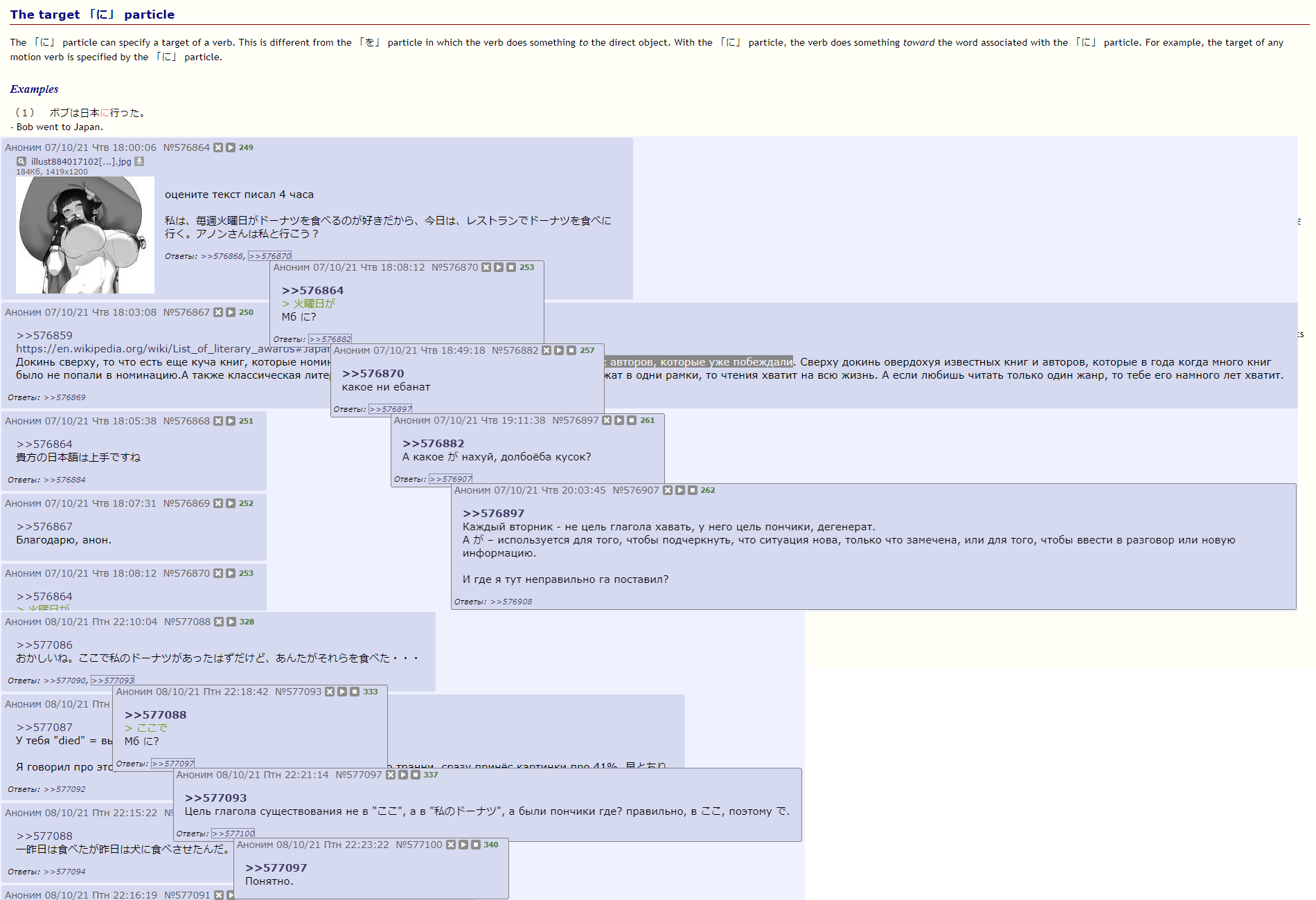 В треде японского обсуждается: сам язык, процесс обучения, реквестятся полезные ссылки или переводы (c обязательным указанием контекста).