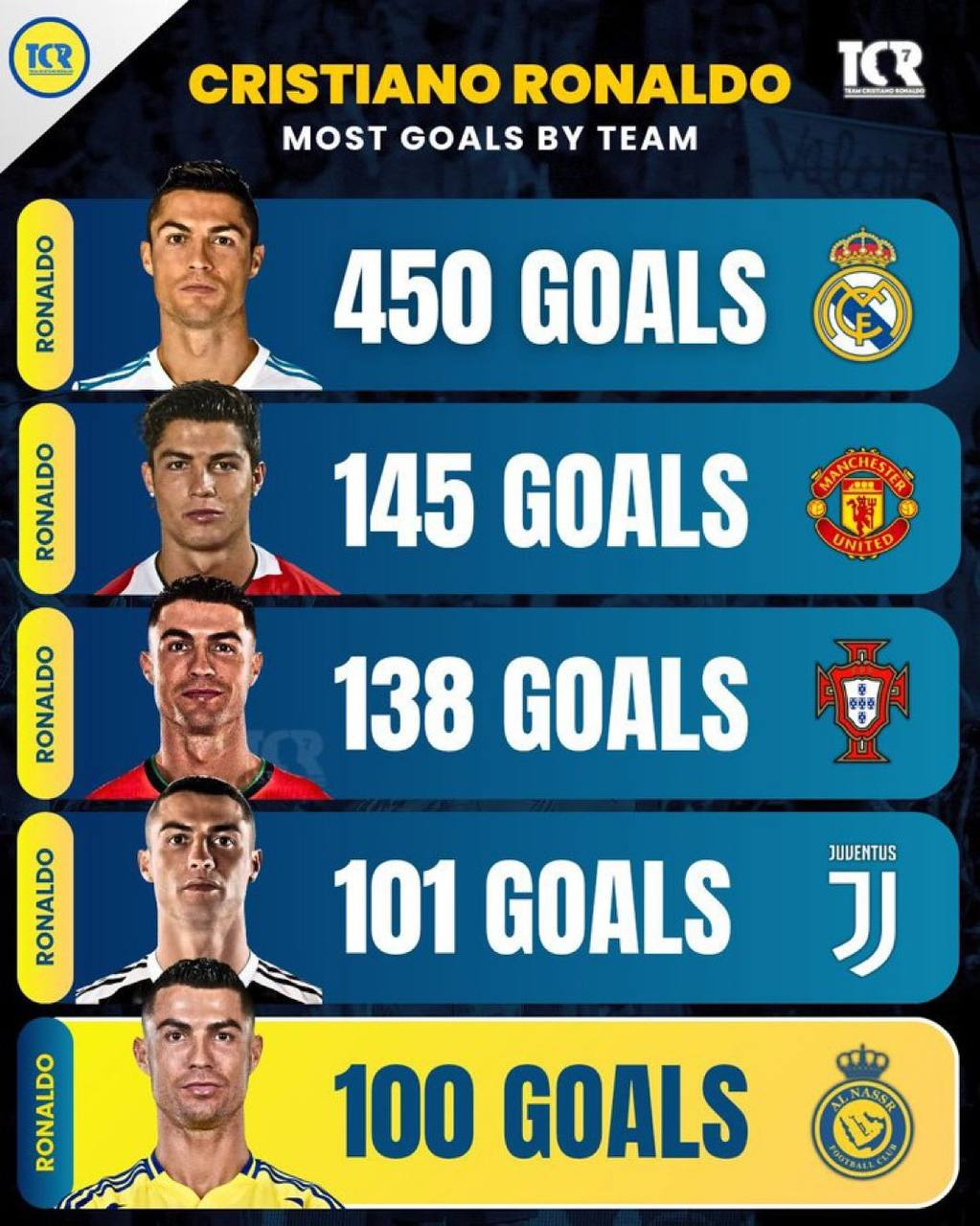 КР тащил КАЖДУЮ команду, в которую приходил. Даже когда на излете вернулся в МЮ, наколотил 19 голов (9 и 10 за сезоны, и тут обойдя Месси). Тащил 4 сильнейших клуба + сборную. Вот и всё.