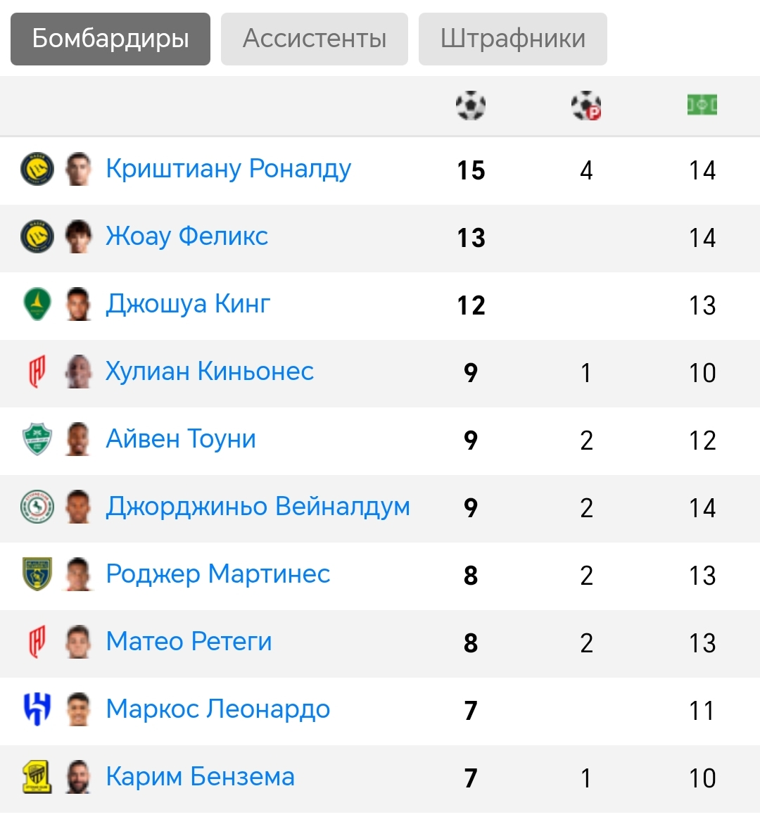 Нападающий «Аль‑Насра» Криштиану Роналду получил приз лучшему бомбардиру минувшего сезона саудовской Про‑лиги. Об этом сообщила пресс‑служба турнира в соцсетях.