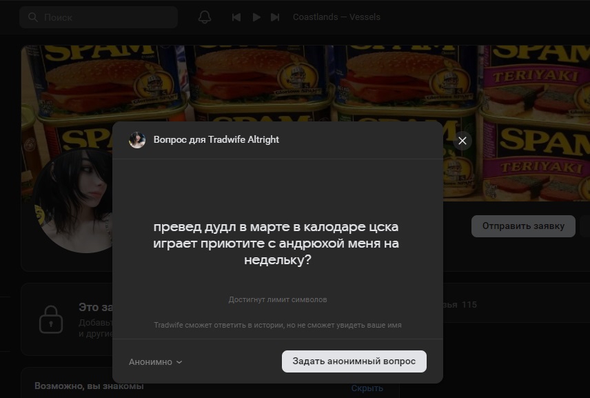 Шлюшенильная инсташлюшка решила, что поймала удачу за хвост, но Макс не стал связывать себя с тупой пиздой и тихо свалил в питерский туман. 100% понимания, 0% осуждения