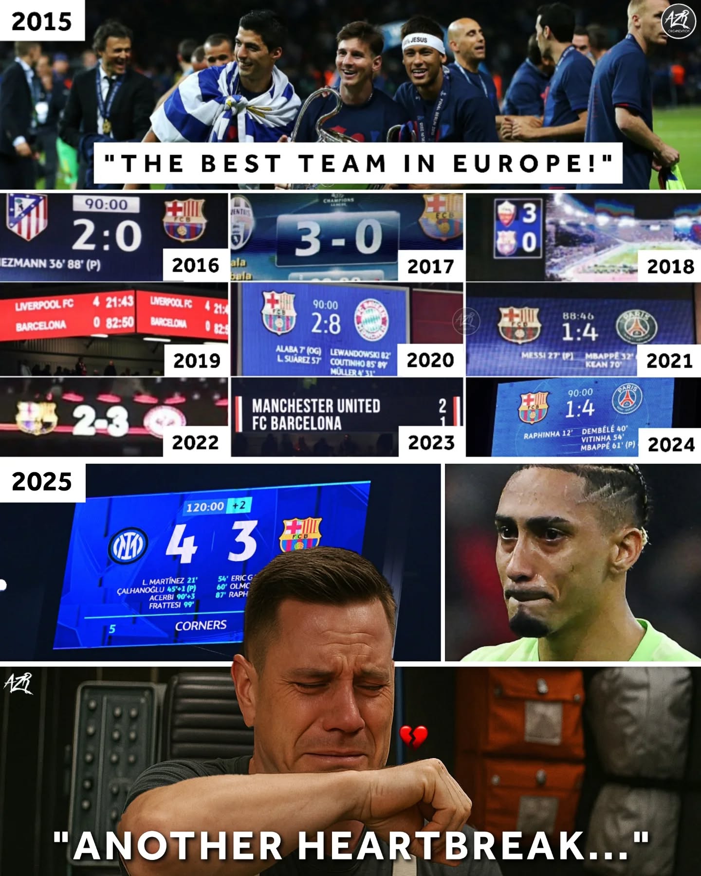 Нынешняя кризисная, проблемная Барселона, доедающая хуй без соли и дёргающие рычаги - лучшая команда Европы, главная сила Европы, которую они мужественно пытаются обыграть.