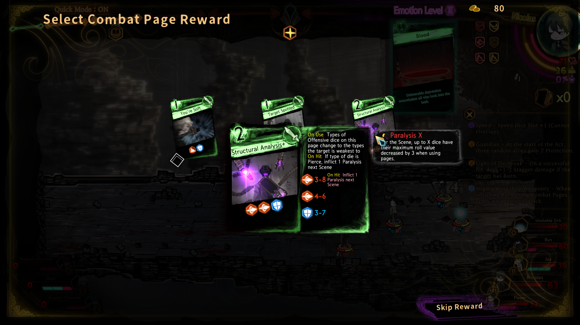 Геймлпейно я игру всё еще ненавижу максимально, полное дерьмище без баланса, без пояснений что от тебя хотят, и даже если делать всё идеально, на 45сп всё еще есть 5% шанса проеба монетки которая отправит тебя на рестарт всего трая тк вся боевка это ебучий сноубол не в твою пользу, но возможно это субъективщина и просто не в моем вкусе.