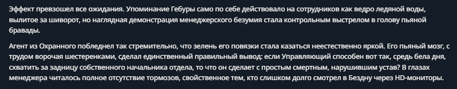 >>5912250 Так все же выбрались, после того как библиотека книги отдала. Ким, Маляры, Иори, эта ебаная многоножка из приглашения В-Корп, нынешняя вальпуга, и т.д. А так ну вот например тот же Рыгалия просто всем распиздел чтобы побольше людей туда на смерть пошло, связей у него явно хватило бы на весь город весточку пустить. Глава через тех же бехолдеров может тоже видел выгоду в том чтобы весь город узнал об этом, какая-нибудь, блять, сама воля города которая индексам прдеписания хуячит способствовала расхождению инфы о библиотеке. Это же маэстро, мастер по выкручиванию из хуйни ещё большей хуйнёй.