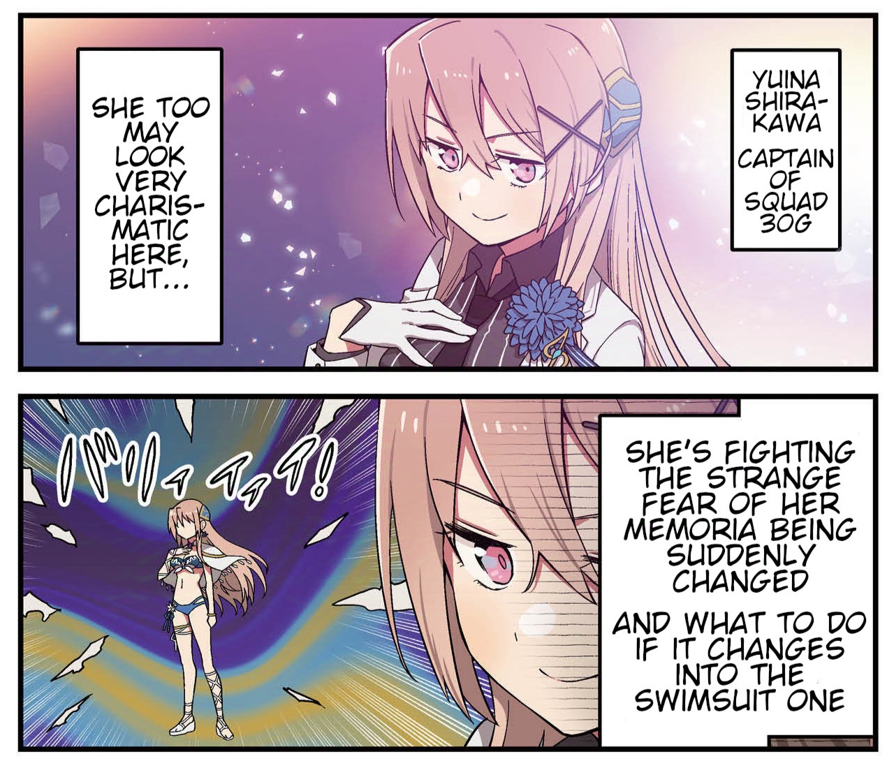 >>5926682 %она явно не 'не боевая' ибо была назначена в сквад (флешбеки про командира двадцать-какого-то отряда отчитывавшего Нанасекс за постное лицо) очевидный задел на душераздирающую сайд-стори почему она не может/не хочет сражаться%%