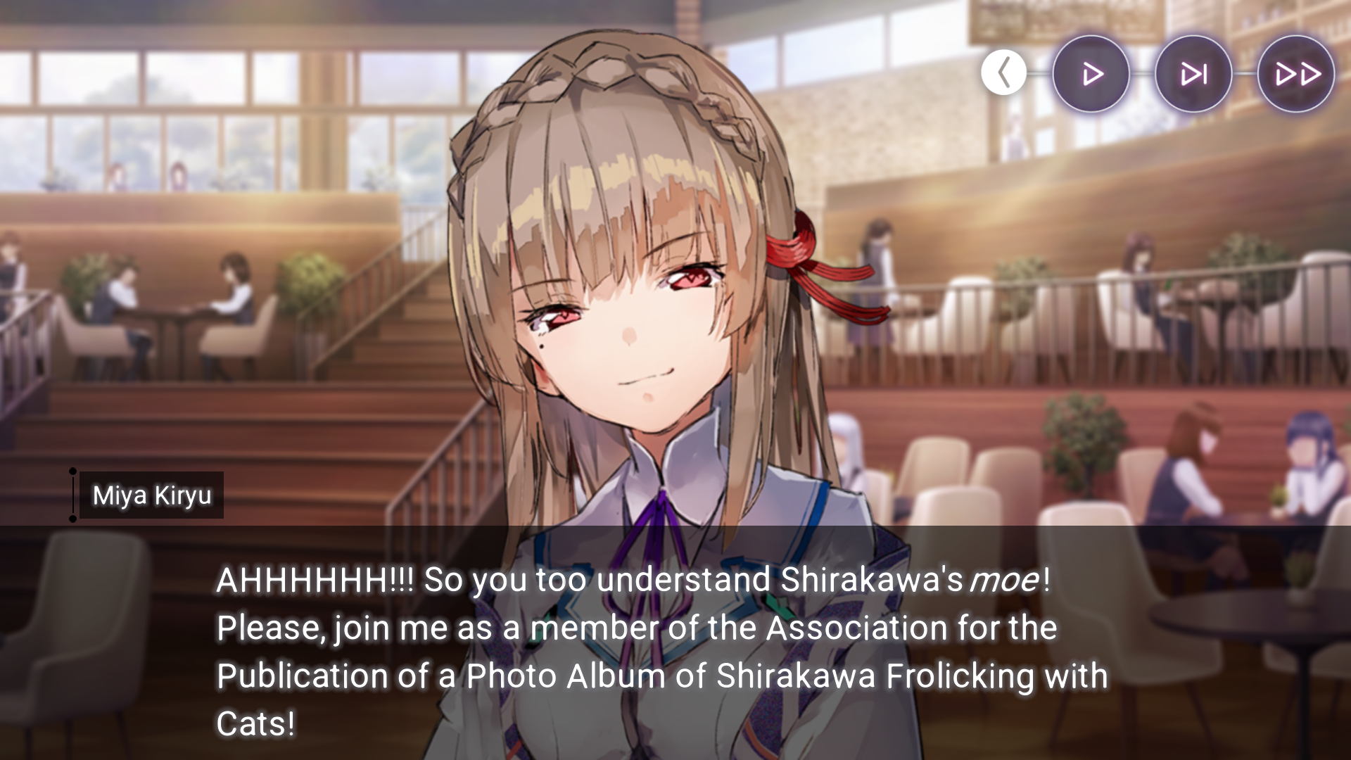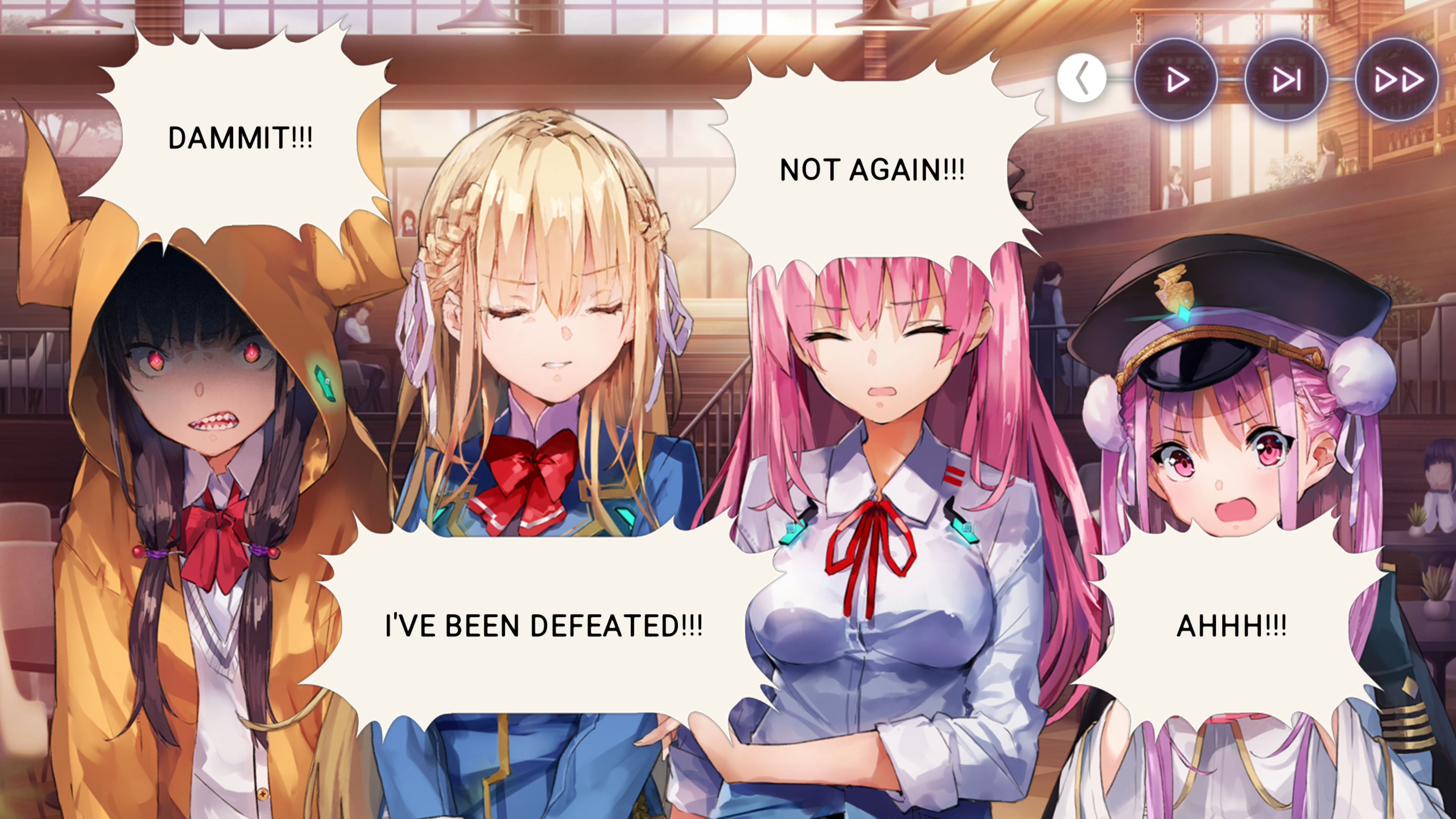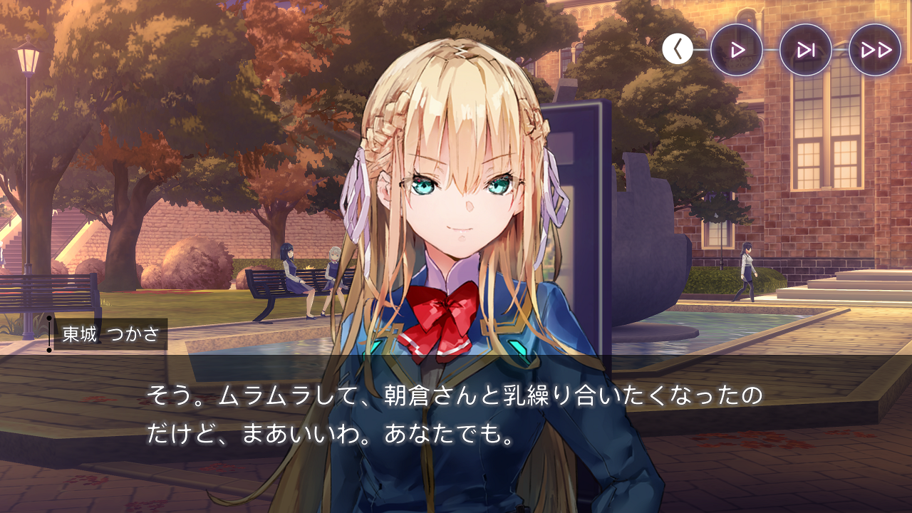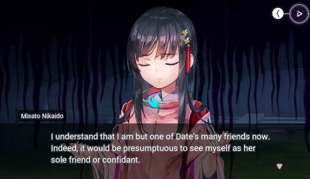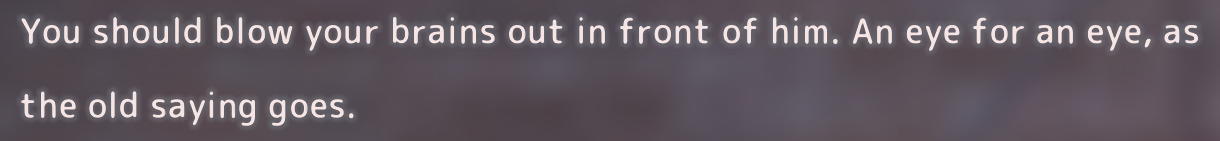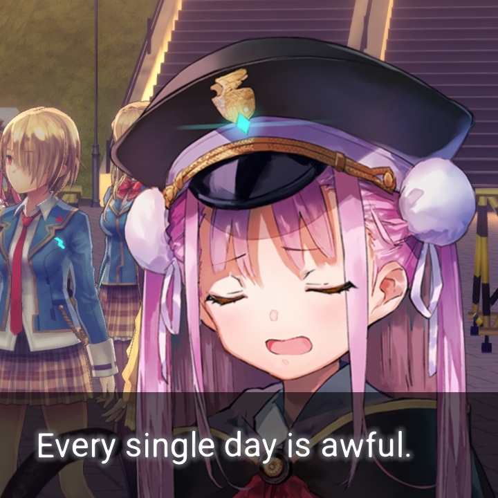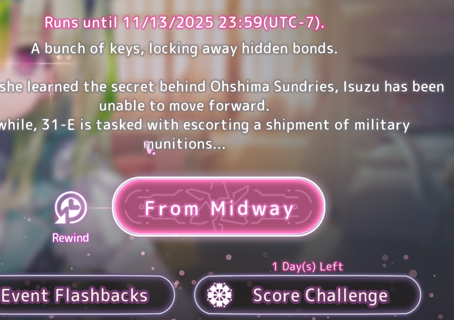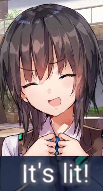 А с Хисако... Ну да, закончили и закончили. Развязка скомканная и без изюминки. Может и получилось бы сделать плавнее и интереснее, но один не умеющий писать кратко человек не сумел совладать с узкими стандартными рамками третьего дня ивента. Второй день отдан под предысторию, то есть под 1-в-1 копипаст сцены из новеллы (я думал это подсократят и местами перефразируют, но нет, полный ctrl+c - ctrl+v текстдамп, вообще никаких отличий, только монохромные арты добавили), вот и получается что весь значимо-свежий AB-шный контент ивента ужался до последнего разговора с по щелчку обмякающим Кирисаки. Meh. Но по крайней мере на этот раз само коллабное взаимодействие целостным вышло, со своими фишками и без убиения "хаб-тира".