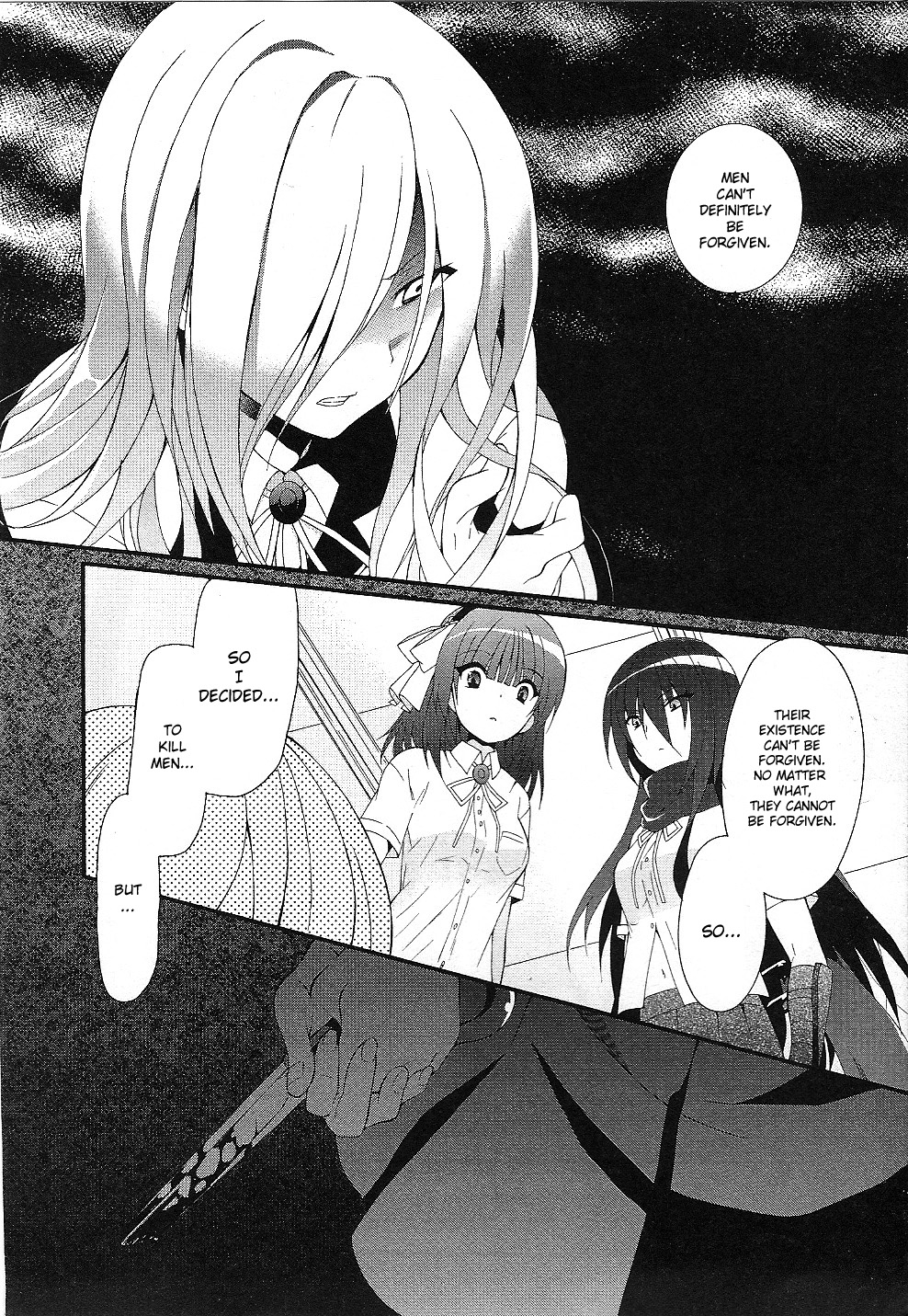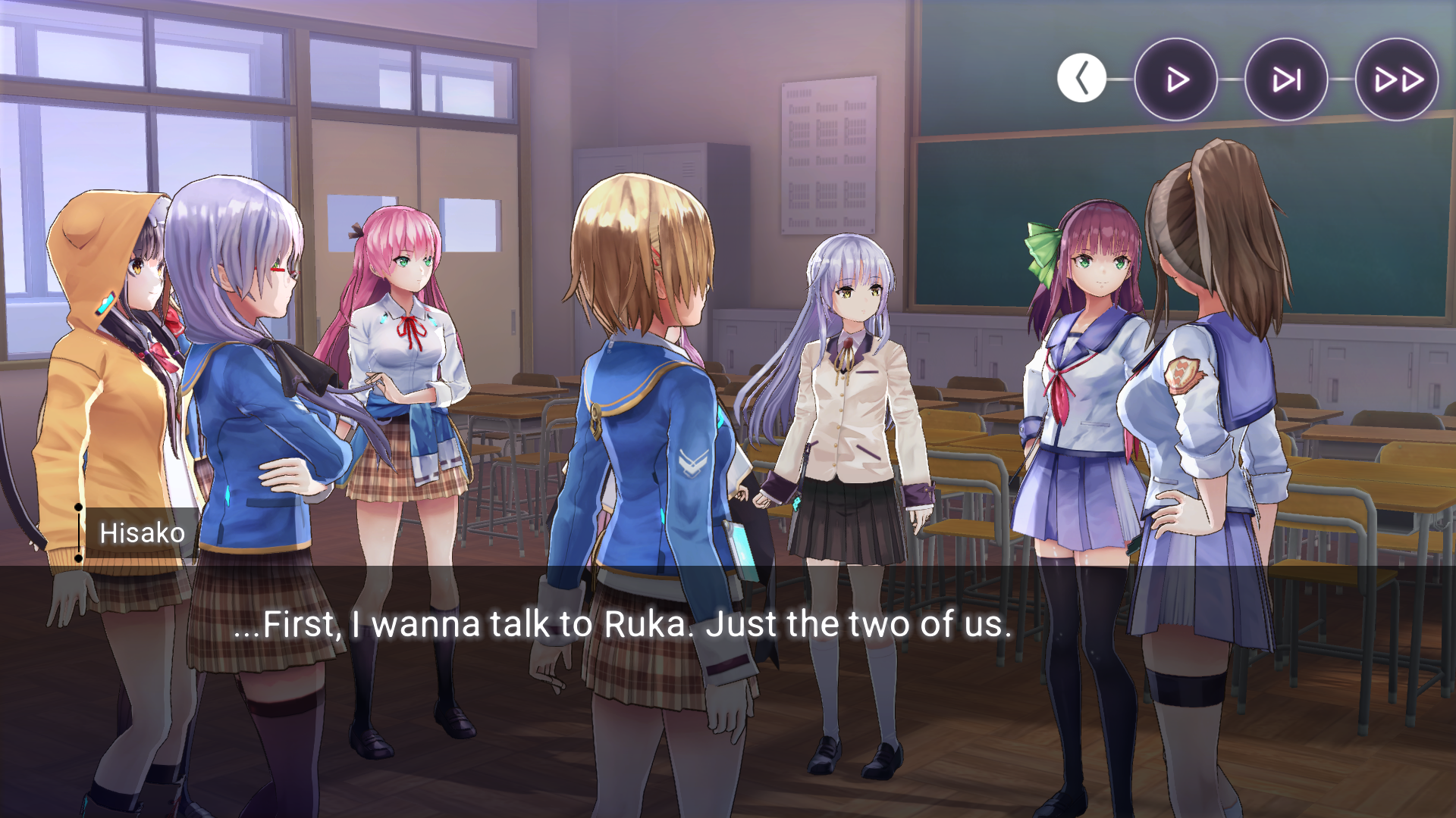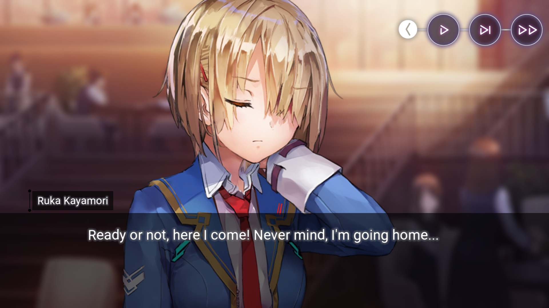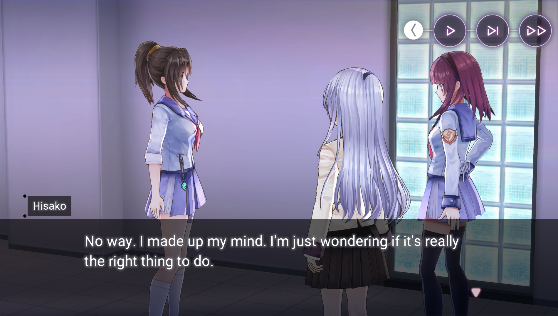 А с Хисако... Ну да, закончили и закончили. Развязка скомканная и без изюминки. Может и получилось бы сделать плавнее и интереснее, но один не умеющий писать кратко человек не сумел совладать с узкими стандартными рамками третьего дня ивента. Второй день отдан под предысторию, то есть под 1-в-1 копипаст сцены из новеллы (я думал это подсократят и местами перефразируют, но нет, полный ctrl+c - ctrl+v текстдамп, вообще никаких отличий, только монохромные арты добавили), вот и получается что весь значимо-свежий AB-шный контент ивента ужался до последнего разговора с по щелчку обмякающим Кирисаки. Meh. Но по крайней мере на этот раз само коллабное взаимодействие целостным вышло, со своими фишками и без убиения "хаб-тира".