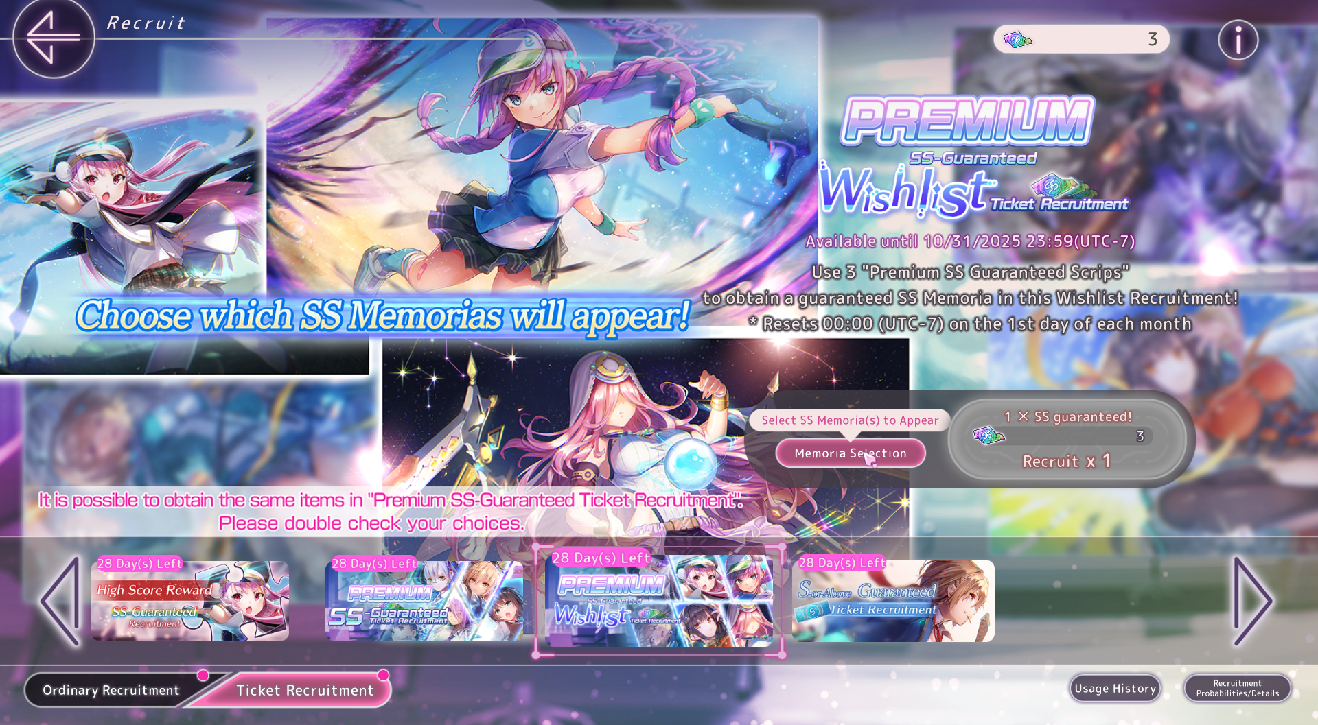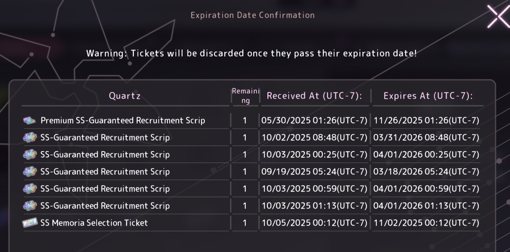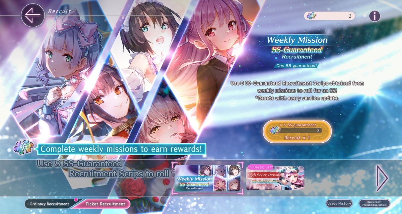 Не понимаю, почему бы не выдавать уже имеющиеся паззлы и вместо этого плодить сущности. Ну да ладно, нам профитнее. Из интересного: пул недельных паззлов обновляется с патчем, а не на месячном ресете. Так, например, в недельном баннере уже есть новая Мья и лолита-доминатрикс, которые в баннере обычных паззлов появятся только в октябре (и то, только если интерн-кун не забудет вручную их туда запихнуть). Имейте это в виду, когда через три недели будете доставать свою Юкки сс1.