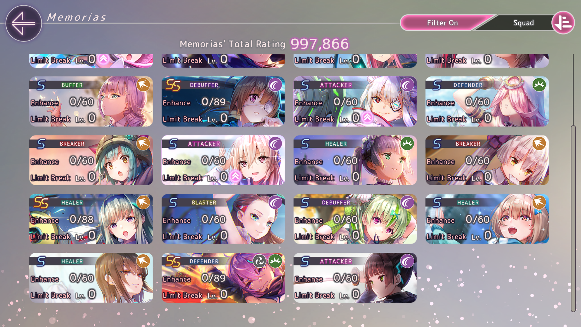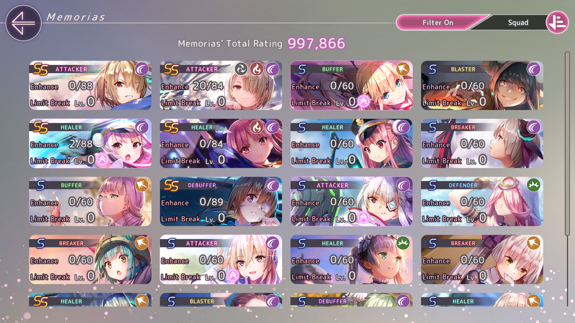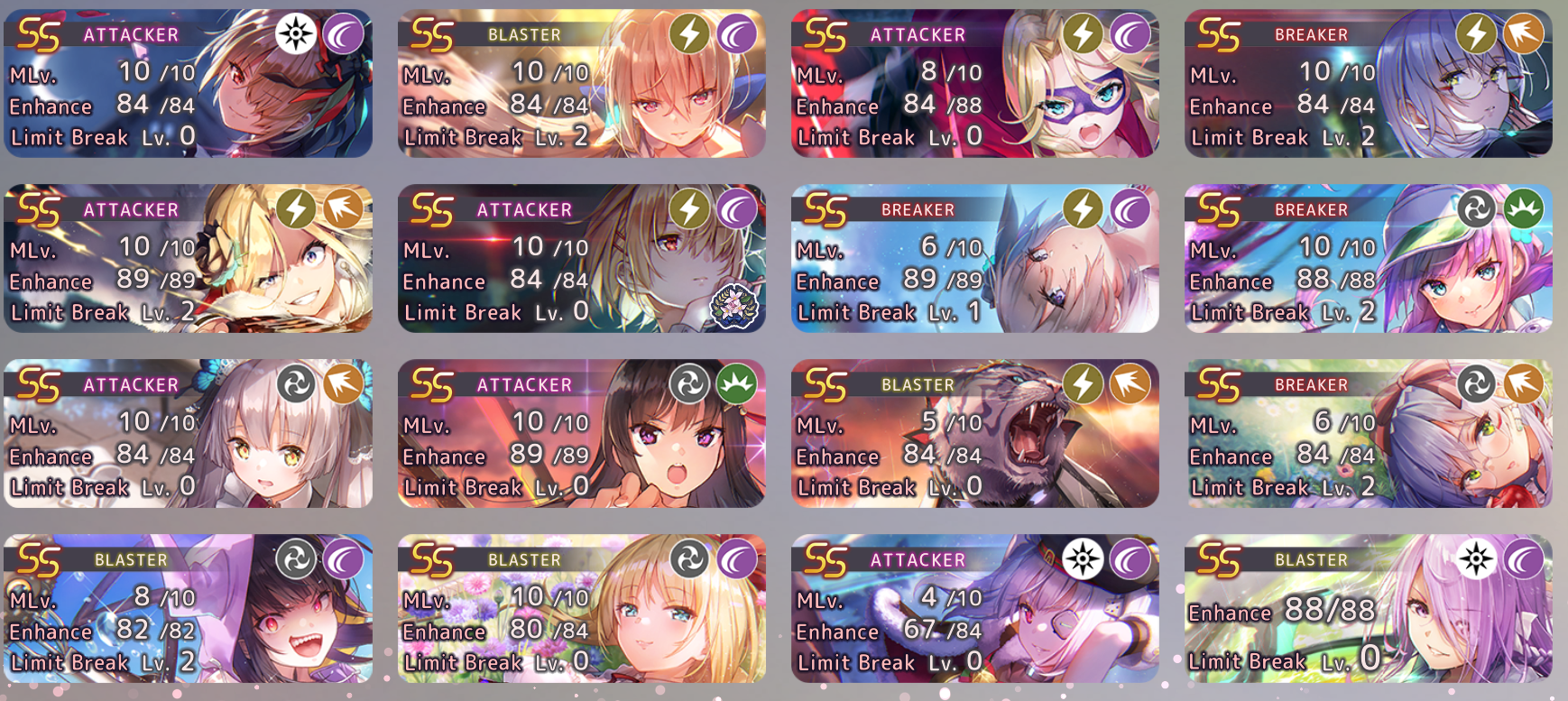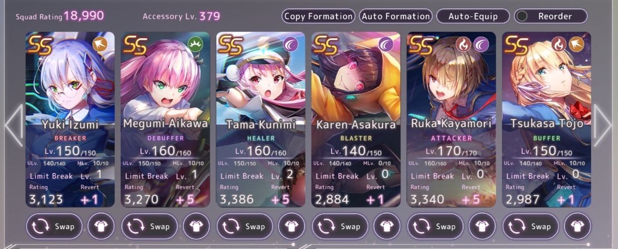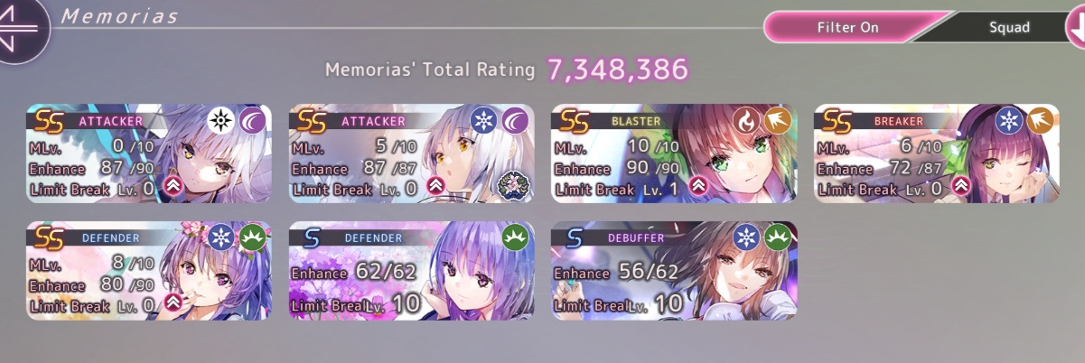 Всем спасибо за советы. Я и забыл насколько тяжко тут реролить, но вроде повезло с первой же попытки после прохождения первой главы. Из рекомендованного в треде баннера пришла Риза и Рука. Полный скриншот команды прикреплю, но на данный момент встал вопрос: а нужны ли мне 3 хила в одной команде? Судя по советам стоит упарываться в одну команду, а дальше дело прокачки и мой ростер намекает на огонь и разрез. Правильно ли я понял намёк игры и стоит ли добирать остаток команды по принципу совпадающего типа урона вне зависимости от редкости или я сосну из-за капа уровня у А и S- это первое и как сильно я сосну без нормального танка - Чиру я помню, это няшный пиздец, но всё же пиздец, это второе. Откуда столько SSок я так и не понял. Они как бы сами по себе появились.