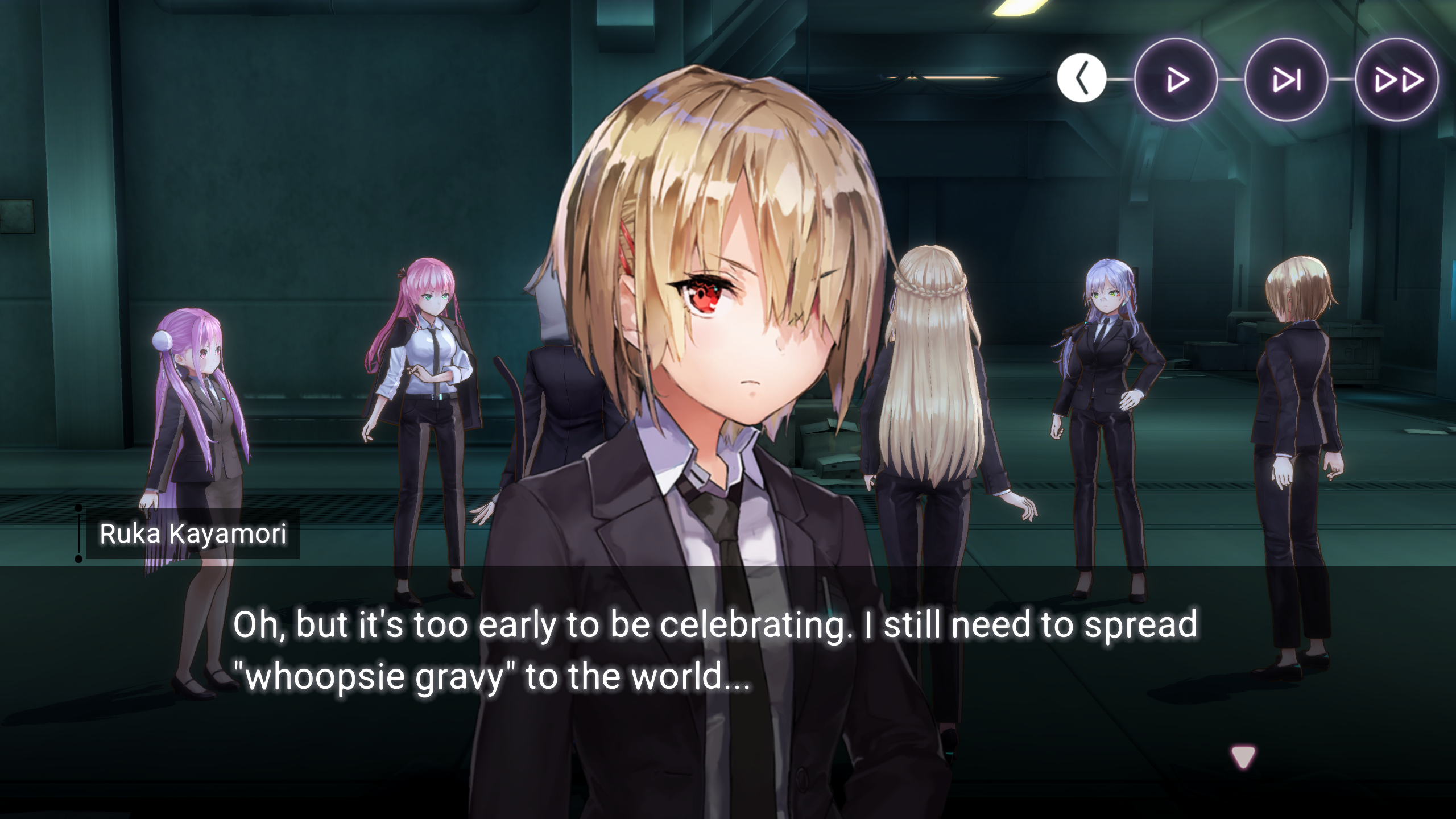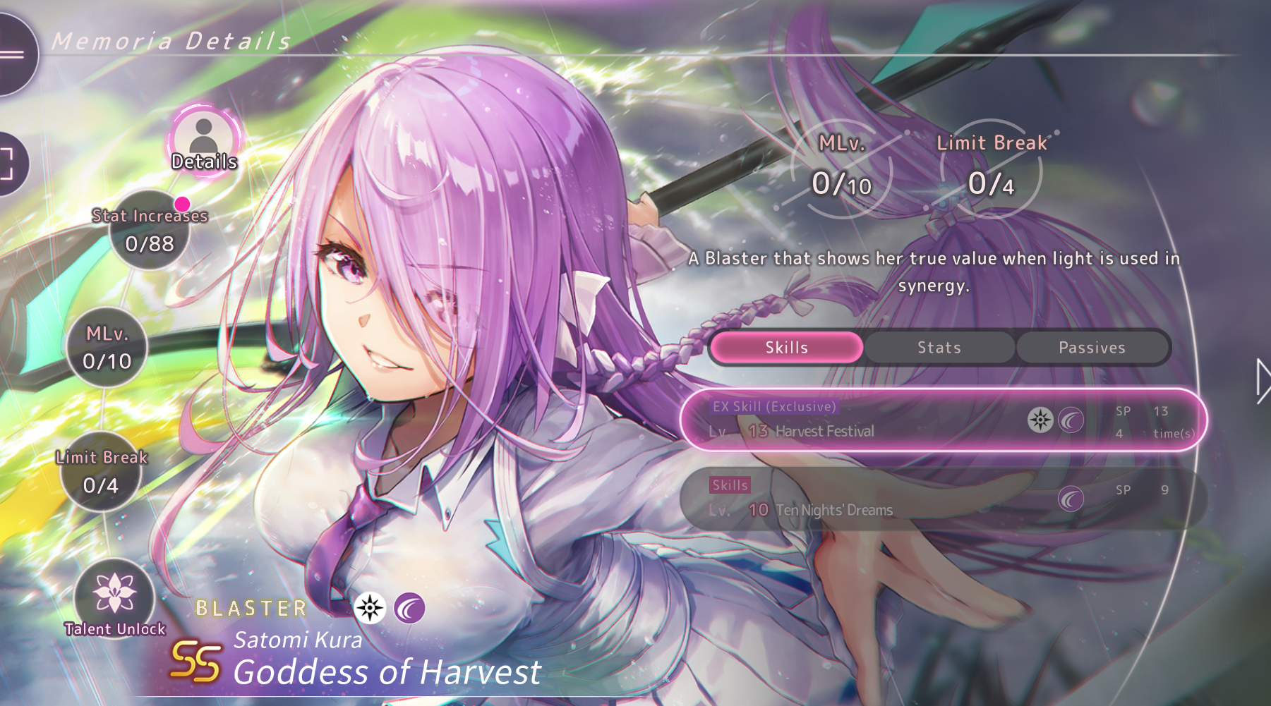 Я считаю, что сейчас нужно обязательно выкрутить унисон Руку - весьма смелый образ с пикантной деталью в виде zettai ryouiki. После наилучшим решением будет накопить 45000 кварца на абсолютно сногсшибательную диву Руку в роскошном, практически свадебном платье! Также было бы преступлением не отметить дерзкие и стильные сценические образы Руки, не заполучить которые было бы очень обидно, хоть я, скрепя сердце, и признаю, что тратить на них ценный ресурс в виде что времени, что кварца, пожалуй, не самое лучшее решение. Следует, однако, подчеркнуть, что всё вышеописанное - сугубо моё личное мнение, видящееся мне, насколько возможно, беспристрастным.