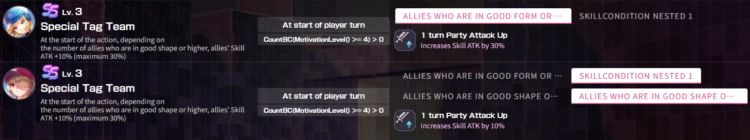 Для чистоты хотелось бы сравнить с дд поколения SS2 и выше. Обычно им уже не навешивали бафф на ульту, а выдавали отдельный навык (который не только улучшался от уровня, но и стакался) как у Юинывкупальнике, рождественской Мисато и подобных.