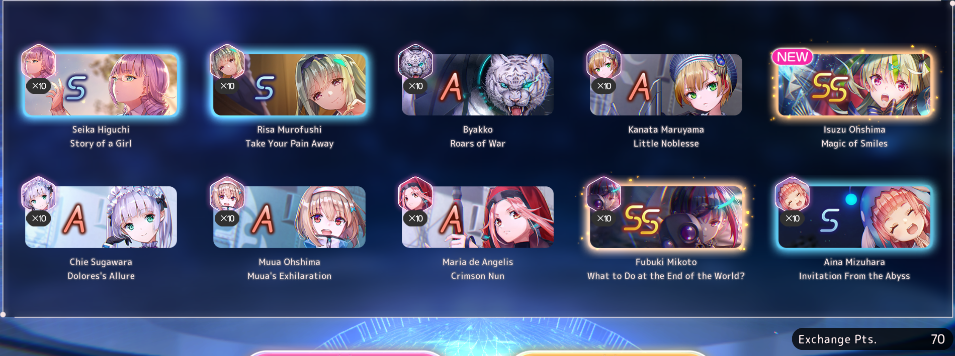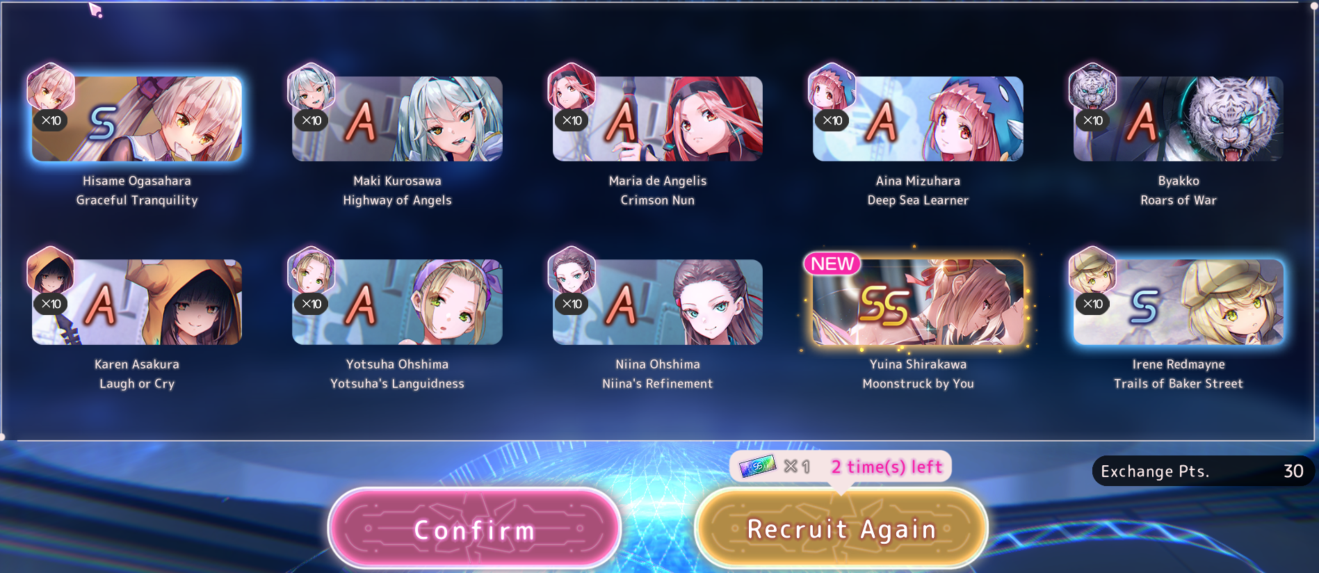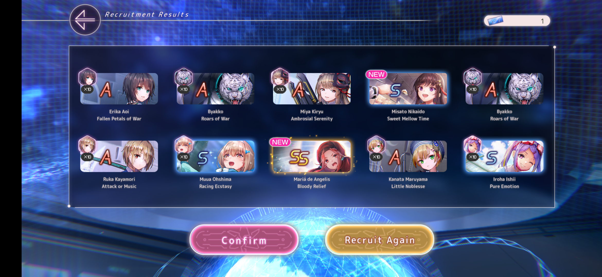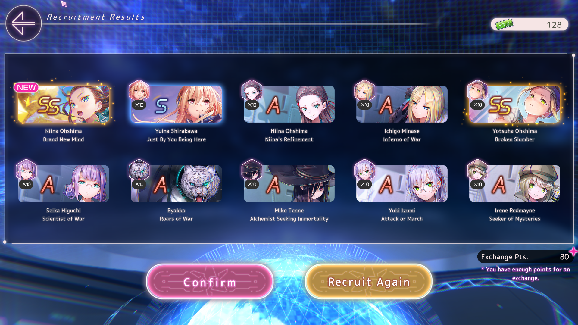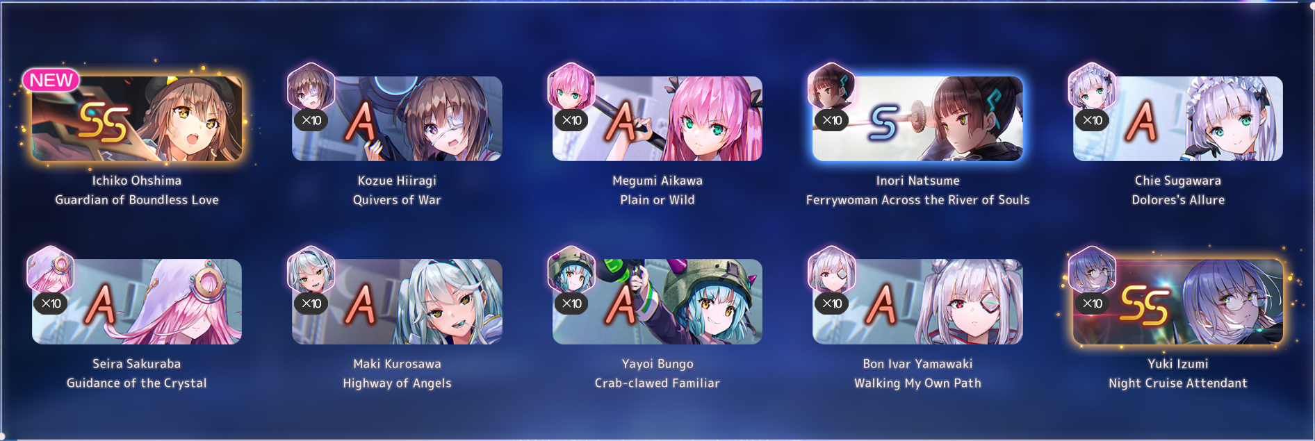 Ну вот теперь как олд Из баннера выбил Шро, Ёцуху и Юину, маловато вышло конечно. Еще Муаа добрал за спарк, остальные 150 еще подумаю в кого залить. Может просто добрать сс1, которых не хватает, хз. Но "правильней" наверное было бы Инори лб2 дать на 100 спарка ради статов для Инори2
