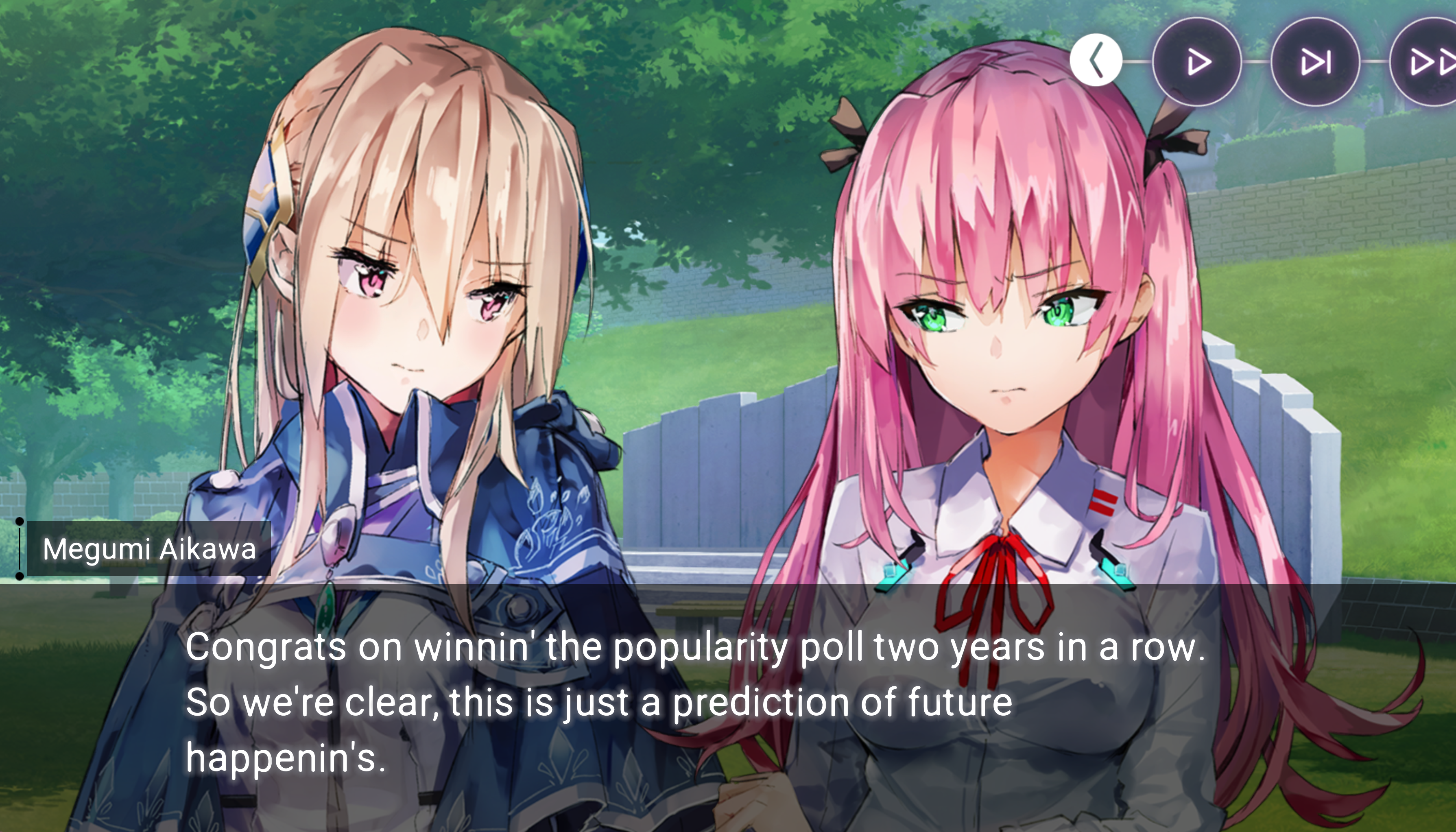 Отсутствие конкретики о внешнем мире вообще можно считать иммерсивным элементом (это конечно так не задумывалось, но давайте притворимся). Игрок видит ситуацию с позиции нарбидевочки с базы, которой вояки поставили ментальные блоки на опасные воспоминания и на лишнюю рефлексию. И которой не положено ничего, кроме как воевать+умирать.