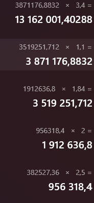 Важный длинно пост по механикам статов. Пока я анализировал скиллы, я задался вопросом а что значат все эти цифры пикрил. И решил посчитать что значат эти +39 внизу и как они в финальную цифру складываются. И когда посчитал то понял очень неочевидную вещь, касаемо лбшек и развития персонажей. Это может быть полезно тем кто собирается развивать аккаунт горизонтально в том числе. Тем, кто не понимает разницы между разными источниками статов. Если коротко сформулировать что я понял: 1) Каждый +1 стат это эквивалент +1 уровню. Все флет +х статов умножаются об проценты в нижней табличке мемории. Все кроме флетов в нижней табличке, потому что они уже умноженные. 2) Каждый +1 к реверсу это тоже эквивалент +1 уровню. 3) Лбшки дают не +10% к статам а около 6% на лб1, и с каждой последующей меньше и меньше. 4) Самое полезное что они делают это увеличение капа уровней на 10, то есть 10 статов. 5) Лбшить на фул имеет смысл только 1 раз в любой мемории. 6) С баджей +1 к статам работает также как те пассивки которые глобально передают между мемуриями по 7+ статов, например силы. 7) Шмотки влияют не так сильно как хотелось бы, их флеты не умножаются но и не прокачивать их смысла нет, это обычная небольшая прибавка, которая передается между персонажами по ситуации. Теперь дебри: Эти условные +39 внизу это сумма эксклюзивных флет +статов за прокачку мемории, умноженная на процент слева. То есть готовая цифра. Если их разделить на этот процент и подставить в табличку глобальных +статов выше будет то же число. Реверсы не пишутся нигде как стат бусты а просто молча суммируются к статам за уровни. 20 реверсов это 20 уровней персонажу даже без лбшек. Просто они делают одно и тоже - дают статы. +8 Силы в верхней табличке пикрила это посути те самые глобал статы открытые с A S SS1 и т.д. меморий, баджики. В +% внизу пишется буст с мемории что часто колеблется в районе 60% - 40% безо всяких лбшек и прочего. Лбшки переоценены потомучто если максимальный уровень уже открыт то эти +10% это всего лишь сумма к имеющимся +60% и т.д. Тоже самое относится и к глобал пассивке за лб4 сс1, и дафне. То есть чем больше ты добавляешь процент тем меньше пользы за каждые +10%, это китам на заметку. Апать до лб4 самый профит это сс1 как не странно. Другим сс достаточно лб1, дальше уже мизерные прибавки. Теперь по передаваемым статам. Условная мемория Адель каждого элемента передает глобально своему юниту около 7 силы. Это все равно что 7 уровней. Они умножаются об проценты как если бы это были родные статы с уровней. 3 Адели сс1,2,3,4? держи 30+ уровней по сути в плане дамага. Собрав всех Аделей ты получаешь больше эквивалента уровням по урону чем лбшнув на 2 какую нить единственную Мари на аккаунте. Это может быть полезно тем кто хочет пробивать пороги но ищет оптимального персонажа под разные элементы. Как то так надеюсь кому то помогло понять статы. Сам я из этого понял что мог идти намного широким аккаунтом без потери в силе персонажей.