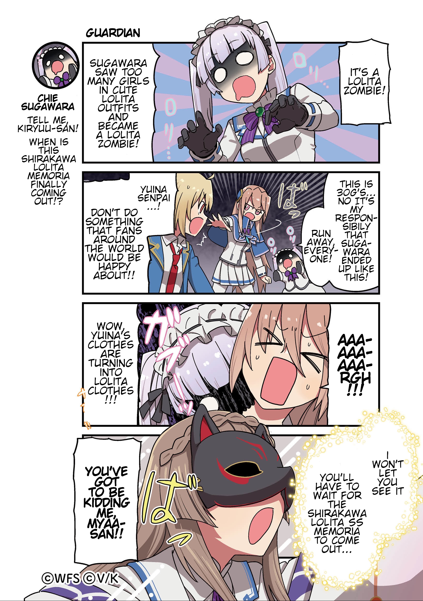 То что ивент чисто маэдовский видно задолго до титров, сходу читается по плотно наваливаемой комбинации репетативного и словесно-абсурдного юмора. И перед титрами тоже - в целях сохранения конспирации довести сестру до крика MIYA ETO TI, с улыбочкой за лисьей маской выйти на кульминацию... А дальше сами как-нибудь, историю же лучше заканчивать на самом пике. Ладно, пора основную сюжетку догонять.