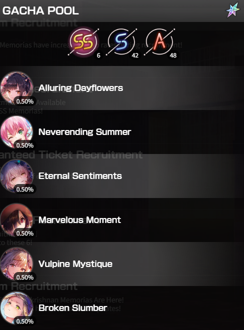 Вообще конкретно этот селектор выглядит своеобразным извинением за баннер оттянутый до такой степени, что уже успела выйти следующая мемория персонажа, случай пока что уникальный. Хотя подобные раздачи хотелось бы получать и дальше, само собой.