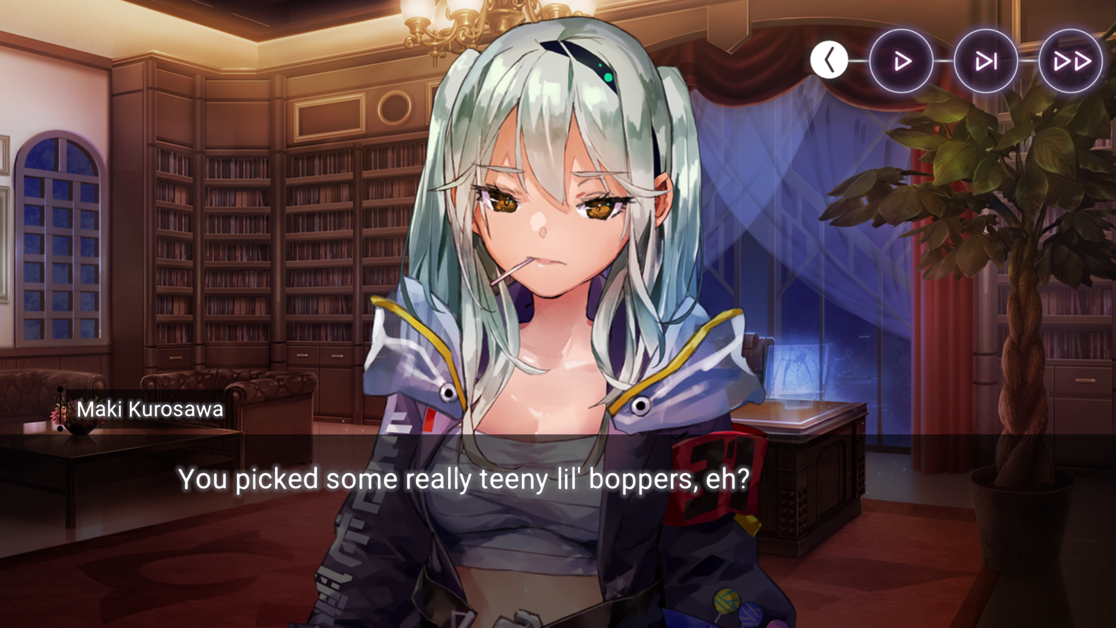 Забрал правую палочку твикс. Особо забавных фраз на мейнскрин у нее нет если что, просто пару раз пищит с жалобами на 31-Х.