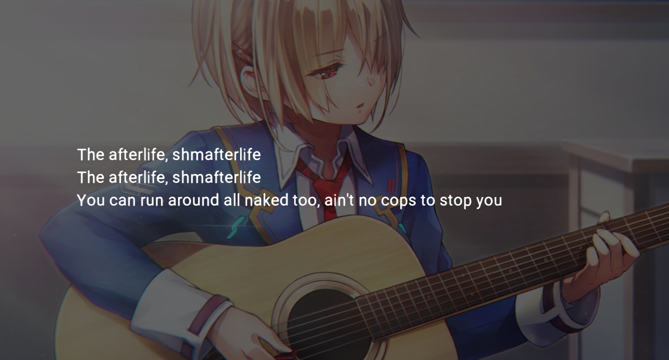 Тяжело ивент проходить, в каждом бою в данже залипать приходится, когда начинают осты Ритмов играть Все же самые кайфовые треки от Маэды для меня в АБ. Даже первый опенинг Кланнада, опенинг Аира и любимые Bougainvillea и オールトの雲 в ХБР не дотягивают. Хоть с музыкой у Кеев всегда все было минимум на крепкую 9 из 10, а в ХБР концентрация топовых остов зашкаливает, но все равно осты Ритмов на другом уровне.