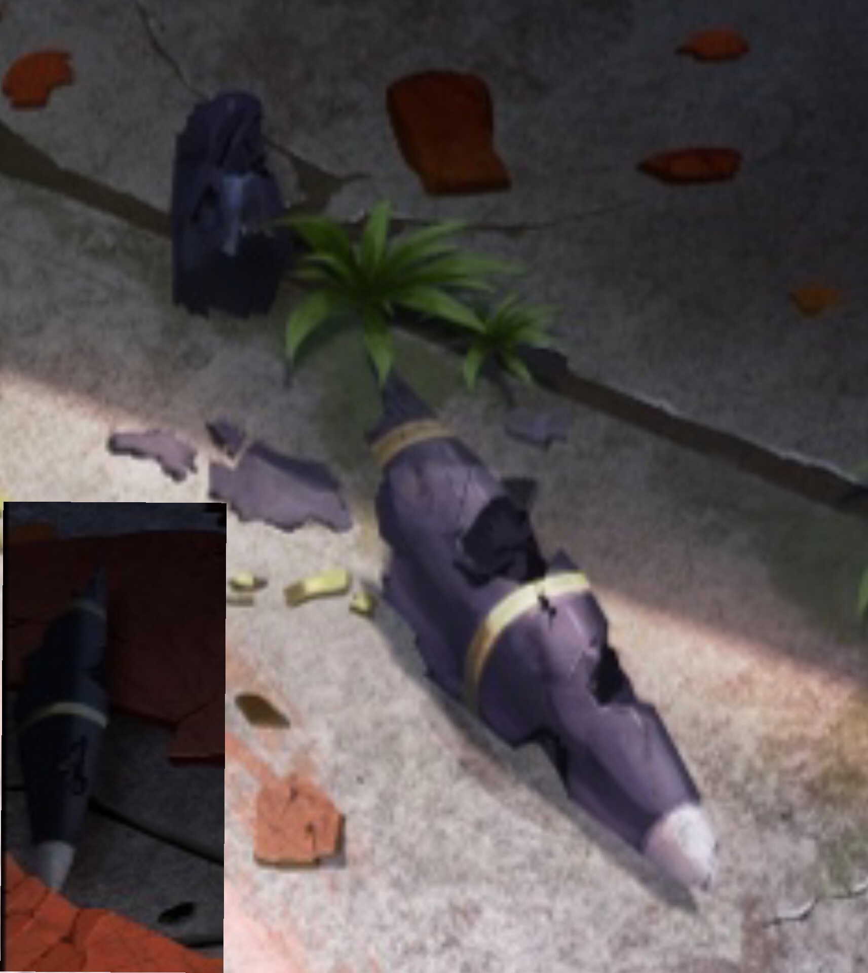 >>5901607 Сейчас специально пошел снова глянуть эту сцену. Акцента там нет, в дело пошло классическое полузамалчивание, говорится только что cancer is tipped over and completely still. Но ладно, текст укладывается в принцип оглушения. Меня капитально сбил с толку арт. На цг обломков (пик 1) видно пару фиговин, явно не относящихся к мопеду и смахивающих на куски рака, предположительно кончики лап. Тем более, что некоторые из них имеют модельки с полосками (вроде?). Но если вернуться рассматривать сам мопед, то приходишь к выводу, что художник решил так изобразить... Остатки гранатометных выстрелов (пик 2). После взрыва. Такие аккуратные и целые. И полосатенькие. Да. Оставим это на его совести.
