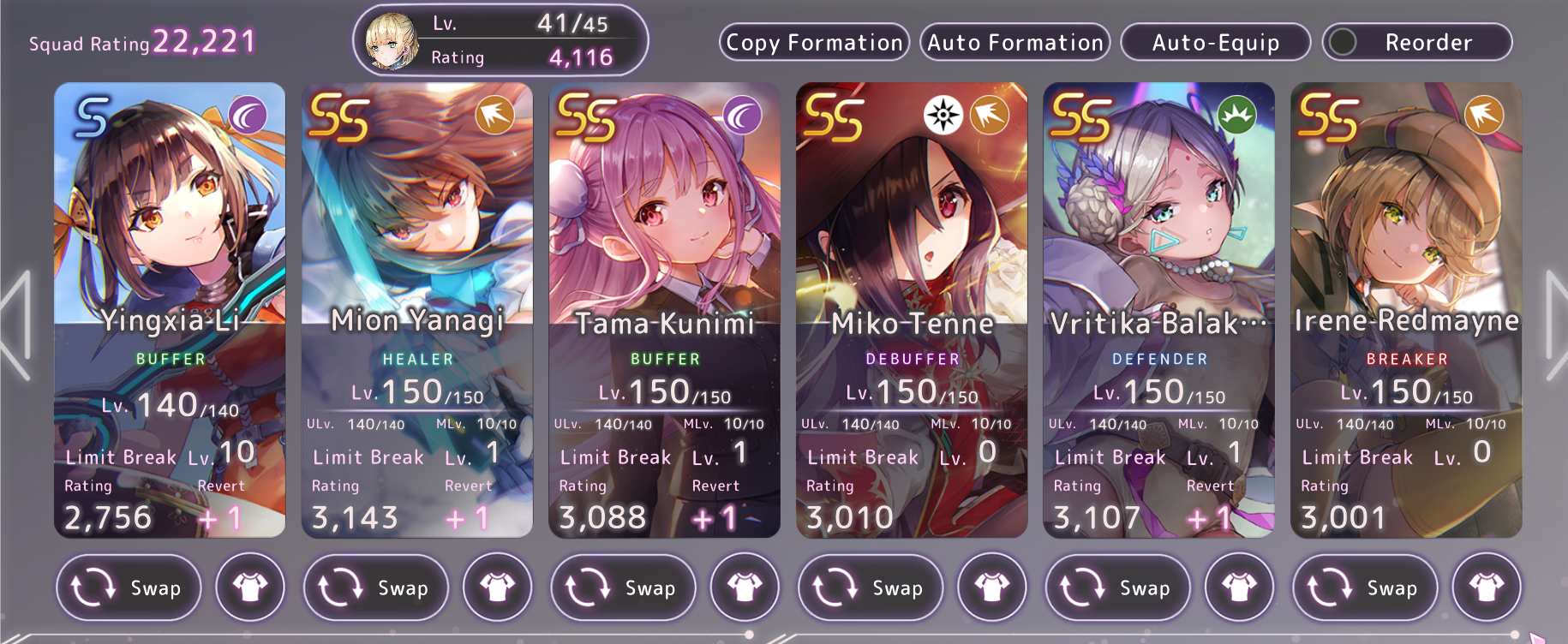 >>5585228 Качай все сски что у тебя есть. За продвижение по миссиям новичков тебе сс0 руку дадут. Она не то чтобы полезная но через нее получишь 20 уровней сверху. Еще бондинги 4 лвла по сюжету откроют статы мемориям, качнешь Руке и Таме. То что у тебя 2 хила это нормально. Риса не умеет хилить у нее ульта это дамаг/баф пати на 2 хода. Таму ставь огненную. Когда получишь доступ к интрожекшенам скиллов - сделаешь прокачку своей первой Таме. Чироу очень сильная на самом деле для треш мобов/сюжетки. Ее тоже качай как танка/дд. В саппорты пихай пока что Айну с рыбьей головой как выпадет ее S, Карен можешь.
