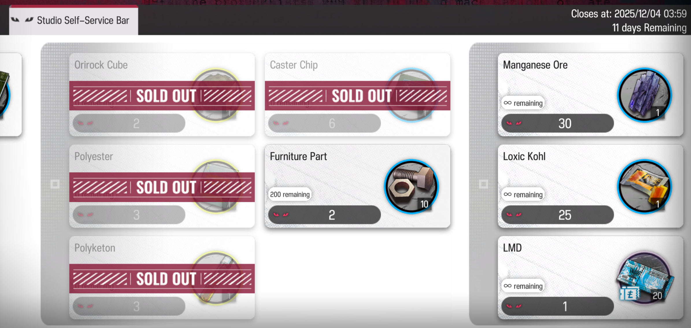 Standard Pool №153 (с 07.11.2025 до 21.11.2025): 6★: Pozëmka / Jessica the Liberated 5★: Cantabile / Mitm / Ashlock В магазине Pozëmka (6★) и Cantabile (5★)