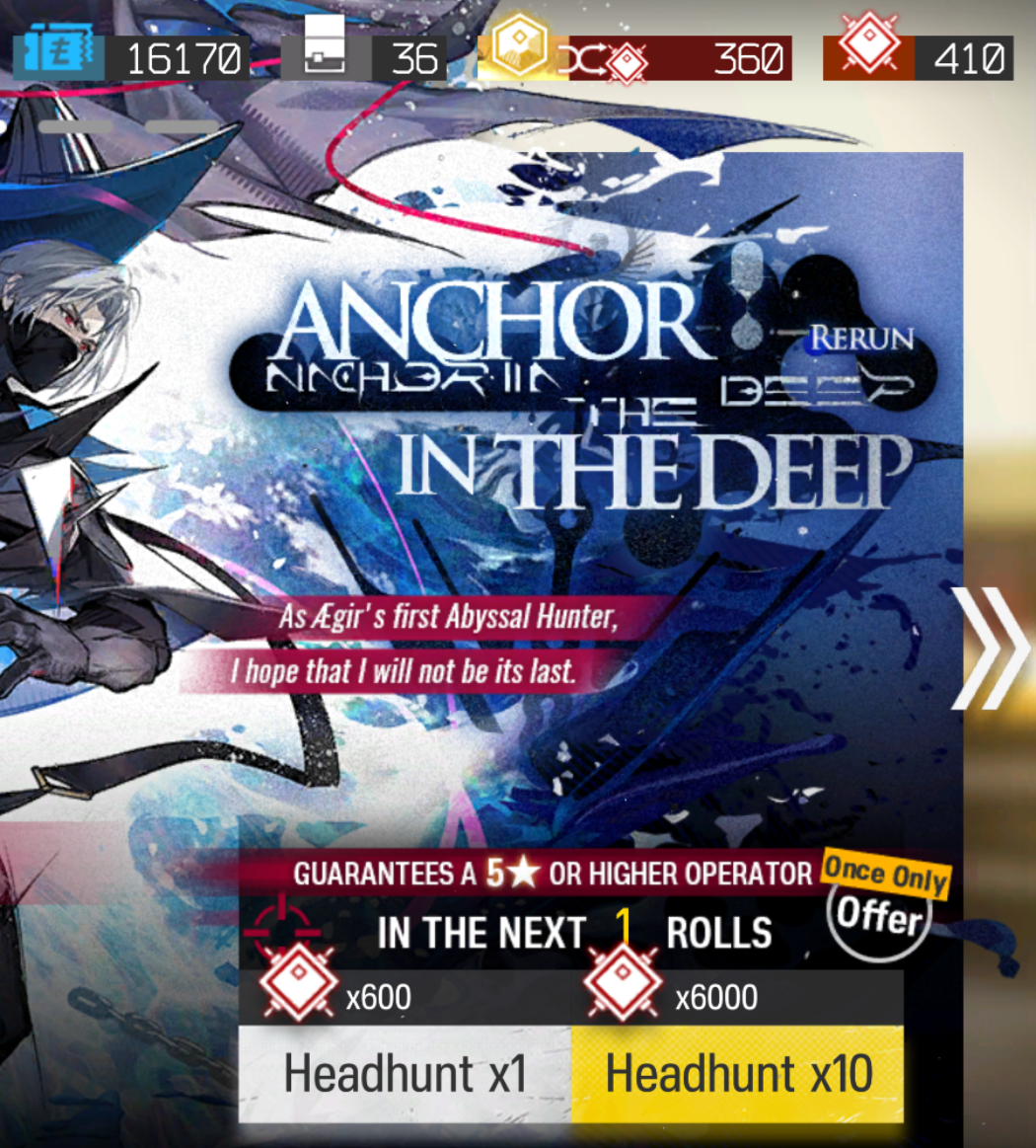 >>5948351 >"Копишь на коллаб" это что означает? Ну, сидишь и копишь 100 круток к... Февралю-марту, если прибавить к китайской дате. 20 круток на коллабе бесплатно, гарант 120. >она в каком-то архивном ивенте идёт? Да. Ивент Under tides. Она оттуда.
