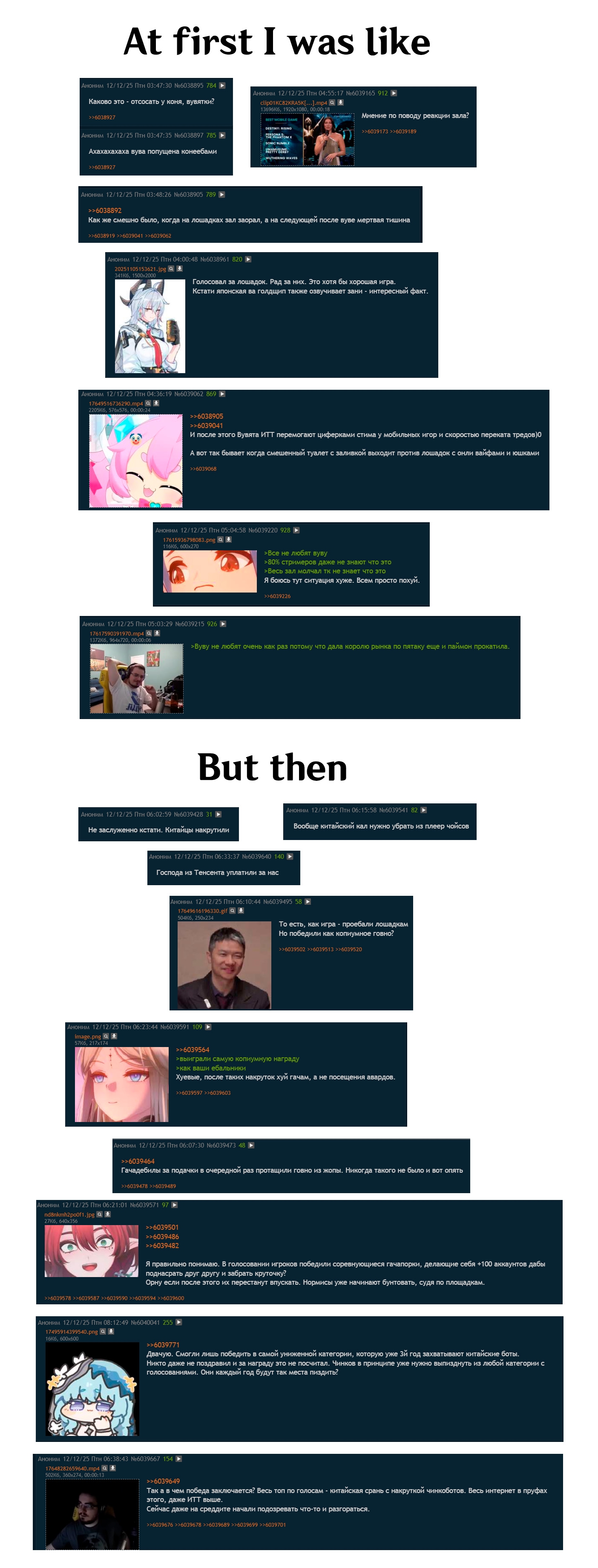 Короче посмотрел я уже кучу записей в основном западных стримеров, которые стримили гейм эвордс. Думал там будет бомбалейло по поводу вувы, но оказывается нихуя.