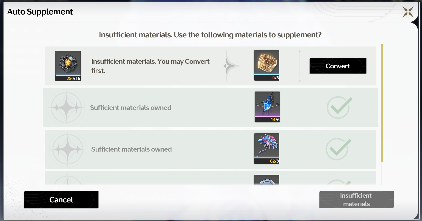 For a low-skill player ("똥손"), you need about 3~4 parties geared with S0R1 (Base Character + Signature Weapon).