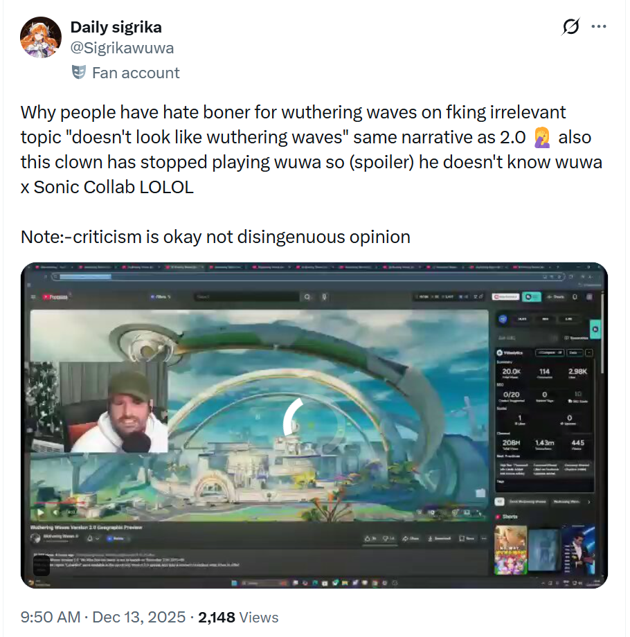 Вы же понимаете, что Ляо, увидев успех Вувы, продолжит воровать у Вувы? Тем самым, геншинята потеряют то, что им так нравится. Их игра. (там уже новая киташлюха в основном по воздуху летает в анимациях - и это вызывает смешной визг в тредах)