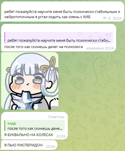 >>6046300 >>6046471 Автор пасты не паймона, это неироничный открытый гей с невыдуманными проблемами по менталке. Он каждый раз отписывается, что ему все больше таблеток из-за шизы назначили. Просто напоминаю.