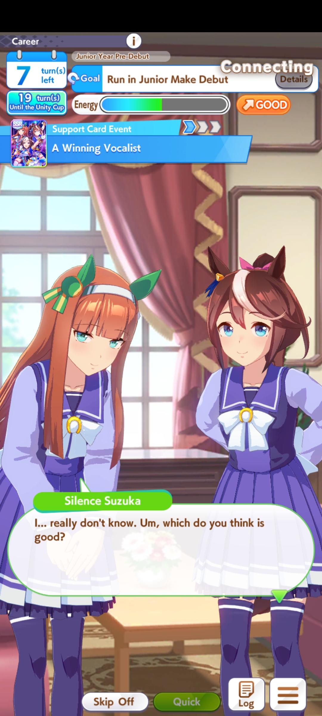Это единственное что интуитивно понятно, что надо на это жать, но сам геймдизайн не понятен и какие решения от меня требуются: если тут дают нажать 10 ходов одного и того же, значит должен быть кем-то рассчитан самый лучший рассчет сколько раз качнуть скорость, а сколько стамину? Зачем мне что то выбирать? Сколько часов вообще длится 1 "карьера", я надолго влип? Судя по тому что она тратит треть дневной энергии то это должно быть на 10-20 минут, но что то у меня много там в каждом ходу че то происходит на часы. Карьеры это и есть основная суть игры? После того как я пройду Кафе на лоу ранк мне надо начинать ее по новой на более лучший? Но мне же придется нажимать те же самые статы. Хотелось бы знать в чем соль и перчик игры тогда.