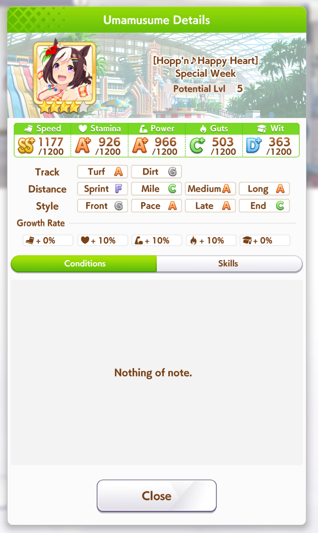 >>6046373 Хорошие бери, плохие не бери. А вообще заходи на gametora.com, переключай версию на глобал и смотри. Учитывай, что длительность указана на 1000 метров и пропорциональна дистанции (т.е. в два раза дольше, например, для 2000 метров).